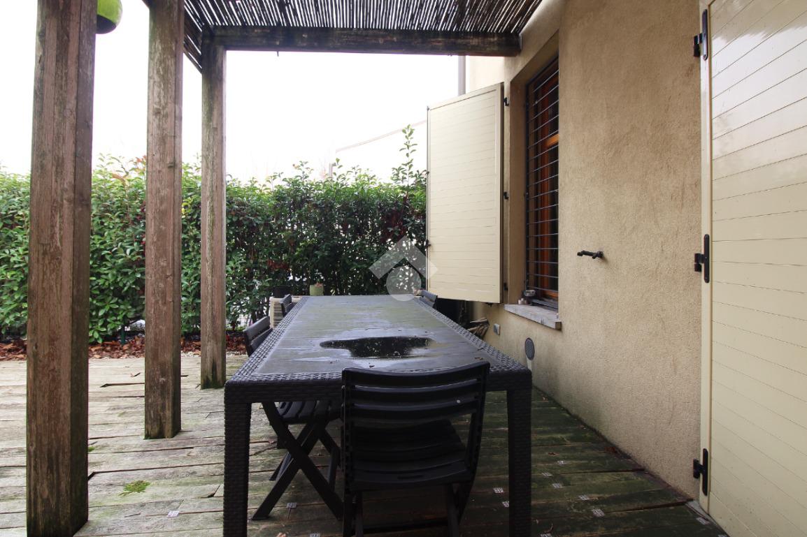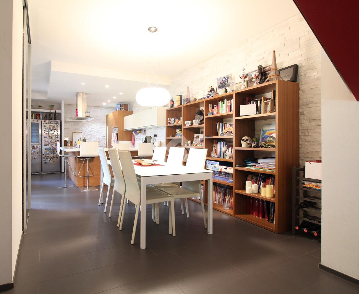 L'immobile è una villetta del tipo a schiera facente parte di un complesso residenziale, costruito nel 2007, caratterizzato da parco privato con piscina. L'immobile si trova nel paese di San Vincenzo di Galliera. L'ingresso all'abitazione è indipendente e avviene dal giardino privato posto sul fronte. La zona giorno, dalla forma rettangolare, è a pianta aperta e si prolunga nel porticato posto sul retro. La forma e le dimensioni del piano terra permettono, se necessario, la creazione di una camera. Il piano superiore ospita gli ambienti della zona notte, con pavimentazione in parquet e travi a vista. Il piano, oltre alle due camere, comprende un secondo bagno, la cabina armadio ed un tarrazzo di circa 35 mq. Gli ambienti della casa sono completi di arredo. Il riscaldamento è autonomo ed è presente l'impianto di aria condizionata. La proprietà si completa di garage.