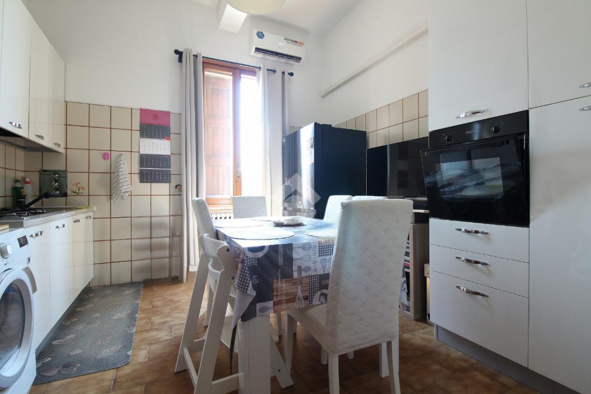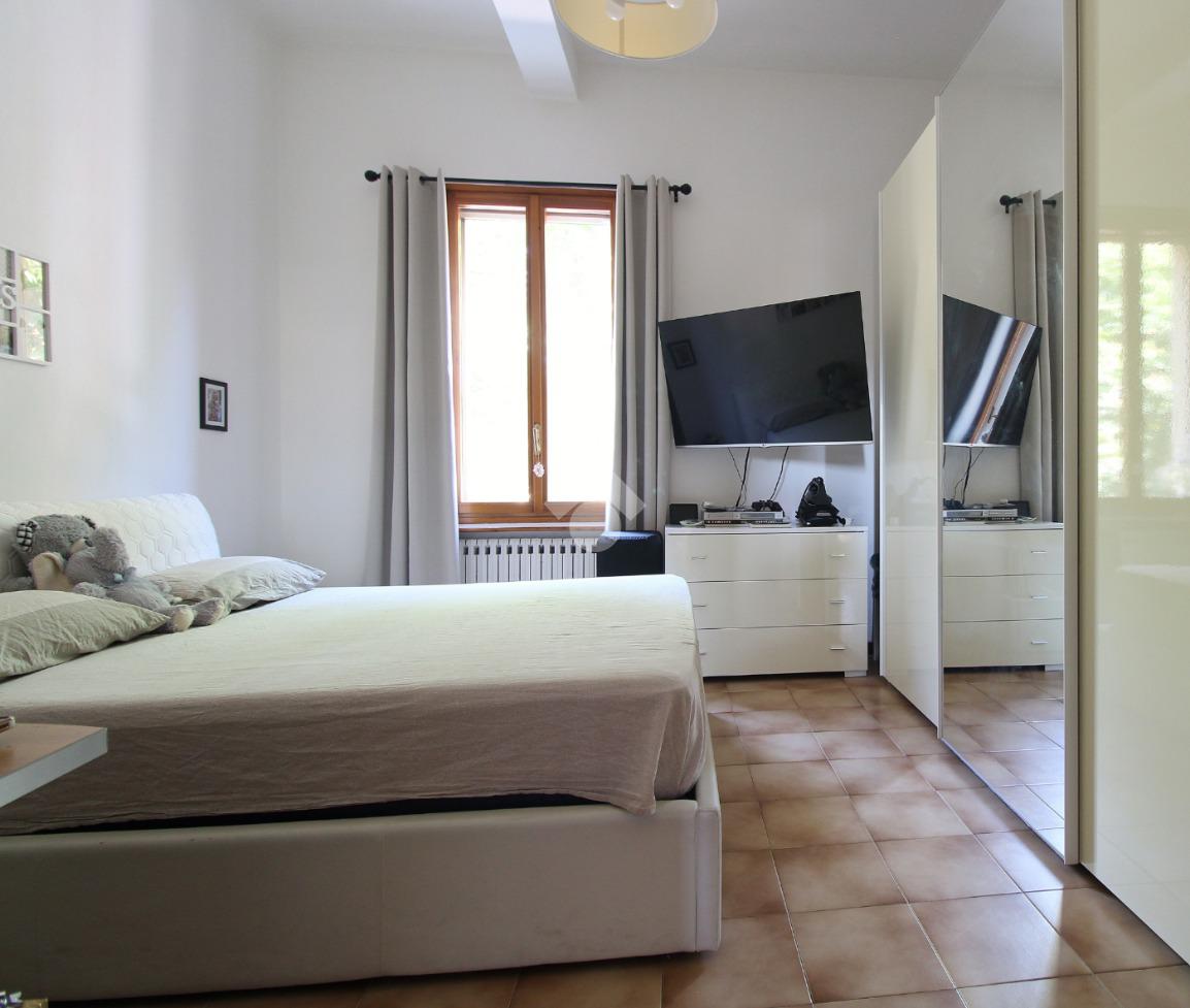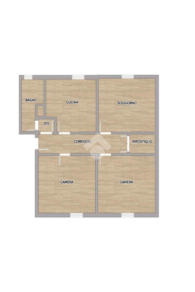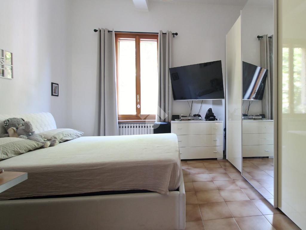 L'immobile è un appartamento sviluppato al primo piano di un vano scala di sei unità. L'edificio sorge nella zona centrale di San Pietro in Casale, comodo a tutti i servizi offerti dal paese. La porta d'ingresso si apre su un disimpegno centrale che distribuisce gli ambienti della casa. La cucina è abitabile e separata dal soggiorno. Entrambe le camere hanno dimensioni matrimoniali. Sono presenti il ripostiglio e due cantine. Il riscaldamento è autonomo e tutte le stanze hanno l'impianto di aria condizionata.