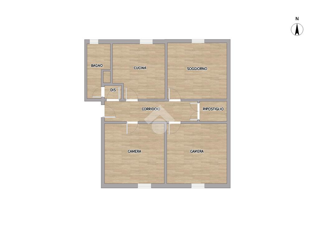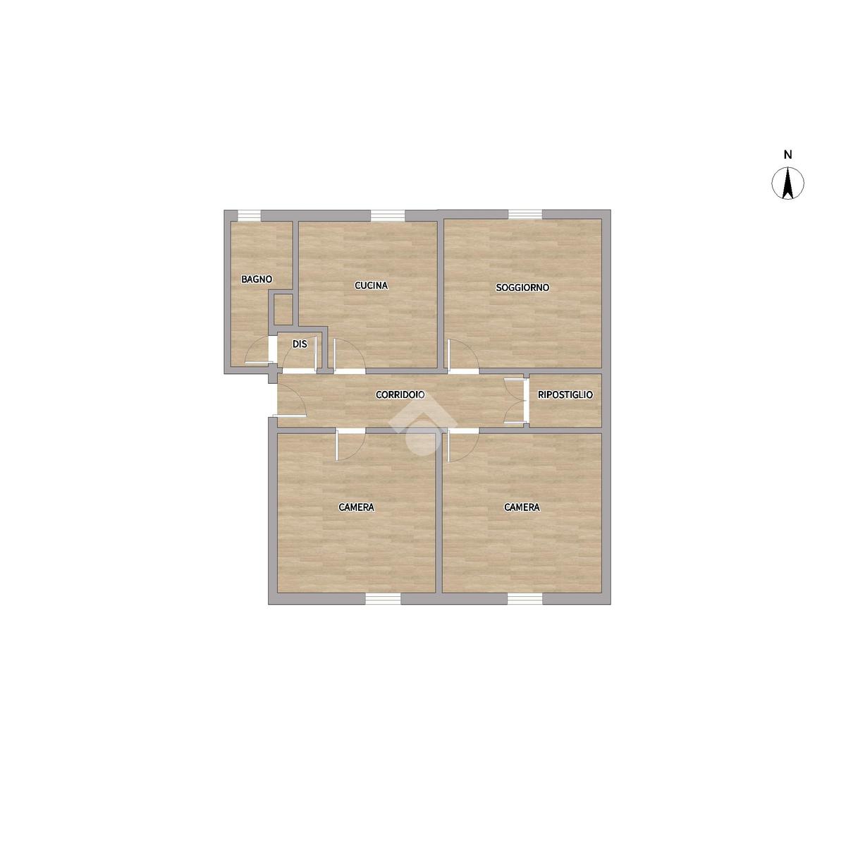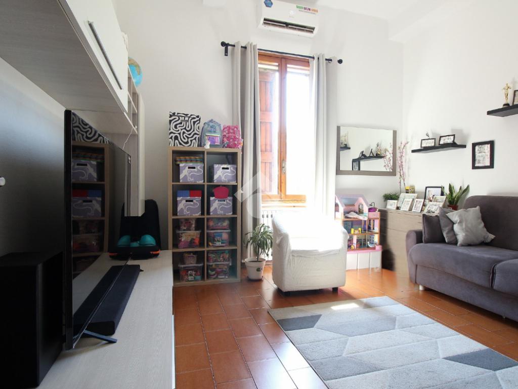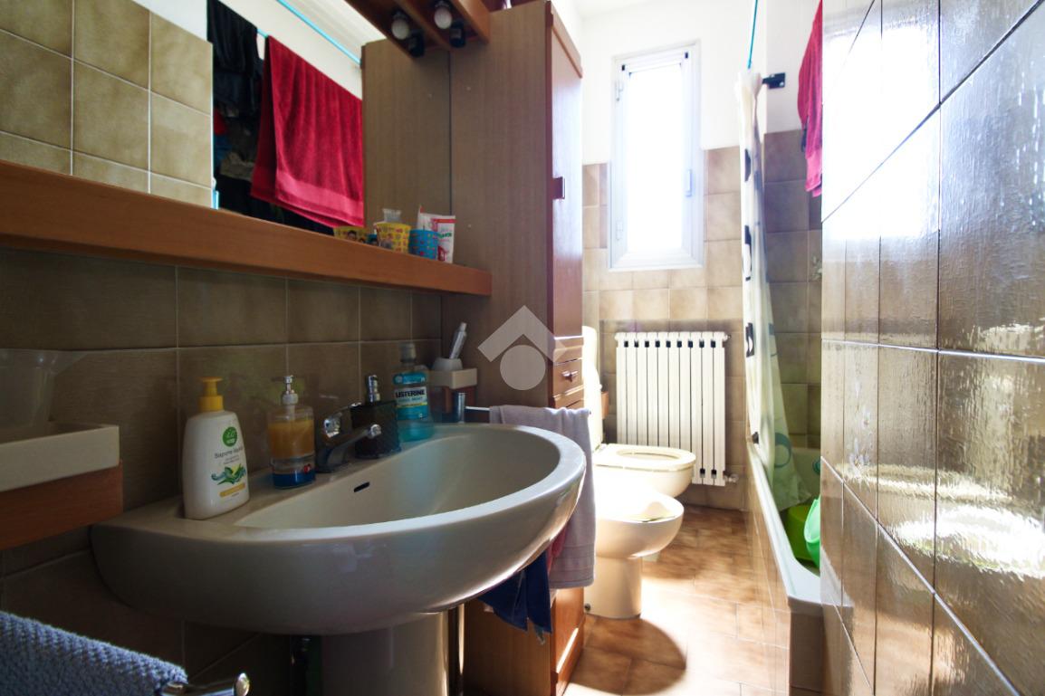 L'immobile è un appartamento sviluppato al primo piano di un vano scala di sei unità. L'edificio sorge nella zona centrale di San Pietro in Casale, comodo a tutti i servizi offerti dal paese. La porta d'ingresso si apre su un disimpegno centrale che distribuisce gli ambienti della casa. La cucina è abitabile e separata dal soggiorno. Entrambe le camere hanno dimensioni matrimoniali. Sono presenti il ripostiglio e due cantine. Il riscaldamento è autonomo e tutte le stanze hanno l'impianto di aria condizionata.