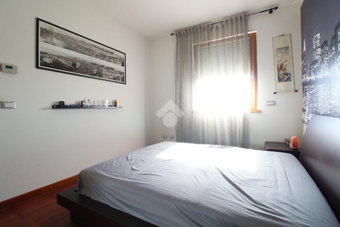 L'immobile è un appartamento sviluppato al secondo ed ultimo piano di una palazzina costruita nel 2008. Ubicata nel paese di San Pietro in Casale, in una zona che permette di raggiungere anche a piedi la stazione dei treni. La porta d'ingresso si apre sulla zona giorno, sviluppata in un unico ambiente servito da balcone. Il disimpegno, che ospita una comoda armadiatura, accompagna alla parte più privata della casa: la camera matrimoniale, con pavimento in parquet, ed i servizi igienici. Gli impianti di riscaldamento e raffrescamento sono del tipo a pavimento. Le tapparelle sono motorizzate e gli ambienti sono completi di arredo. La proprietà si completa di garage e posto auto privato.