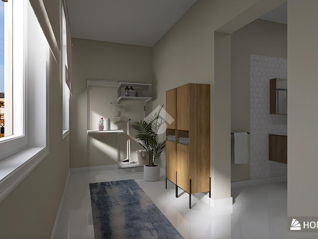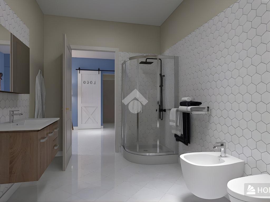 L'immobile è un appartamento sviluppato ad un comodo primo piano, all'interno di una palazzina ubicata a San Pietro in Casale, nel cuore del paese. La porta d'ingresso si apre su un disimpegno che distribuisce gli ambienti della casa. La zona giorno è organizzata in un openspace con la cucina sviluppata in un angolo, a vista. La camera da letto è matrimoniale. I servizi sono dotati di un antibagno ed è presente il ripostiglio. Il riscaldamento è autonomo ed è presente l'impianto di aria condizionata. Le immagini allegate sono render che ipotizzano un moderno progetto architettonico. L'abitazione si presenta, comuqnue, in buono stato, con rifiniture di tipo rustico.