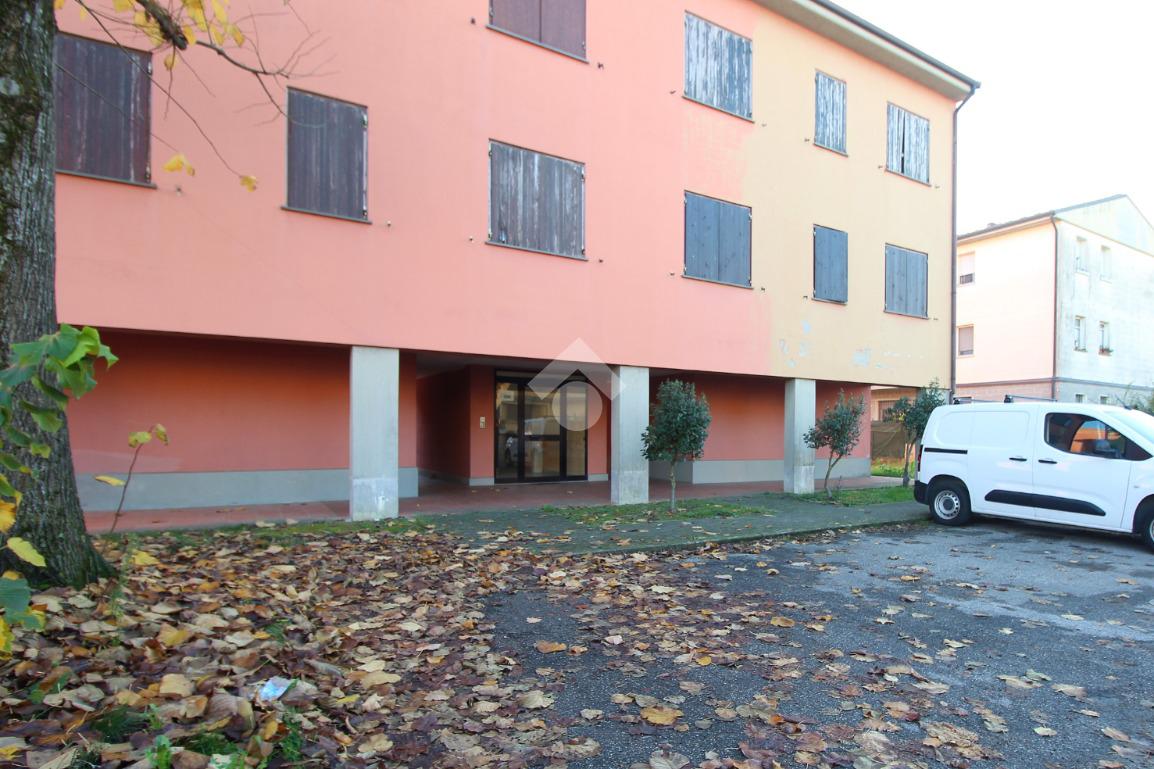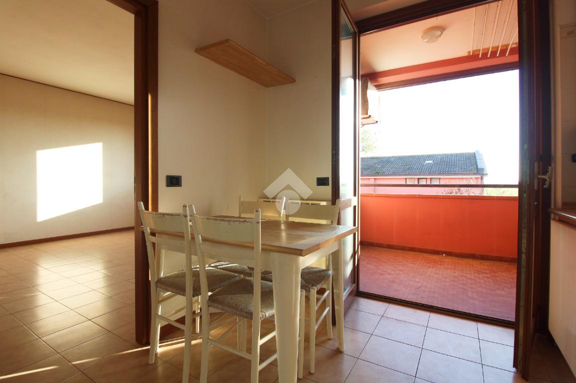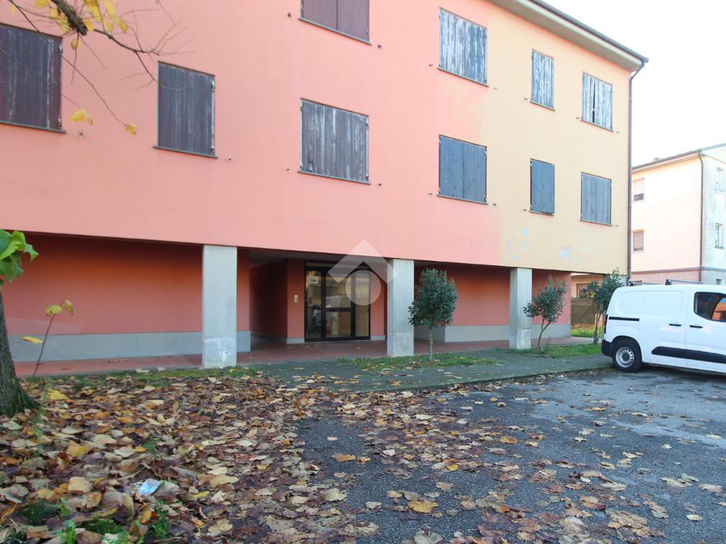 L'immobile è un appartamento sviluppato al secondo ed ultimo piano e libero su tre lati. Fa parte di una palazzina di sole quattro unità che sorge nel Comune di San Pietro in Casale, nella frazione di Maccaretolo. La tipologia è quella degli inzi degli anni Novanta e mantiene le sue caratteristiche originarie: l'abitazione necessita di alcuni interventi di manutenzione. La porta d'ingresso si apre sul soggiorno; la cucina occupa un ambiente separato ma, entrambi, hanno accesso al balcone. Il disimpegno distribuisce le due camere da letto, la matrimoniale e la singola, ed i servizi igienici. La proprietà si completa, al piano terra, di garage.
