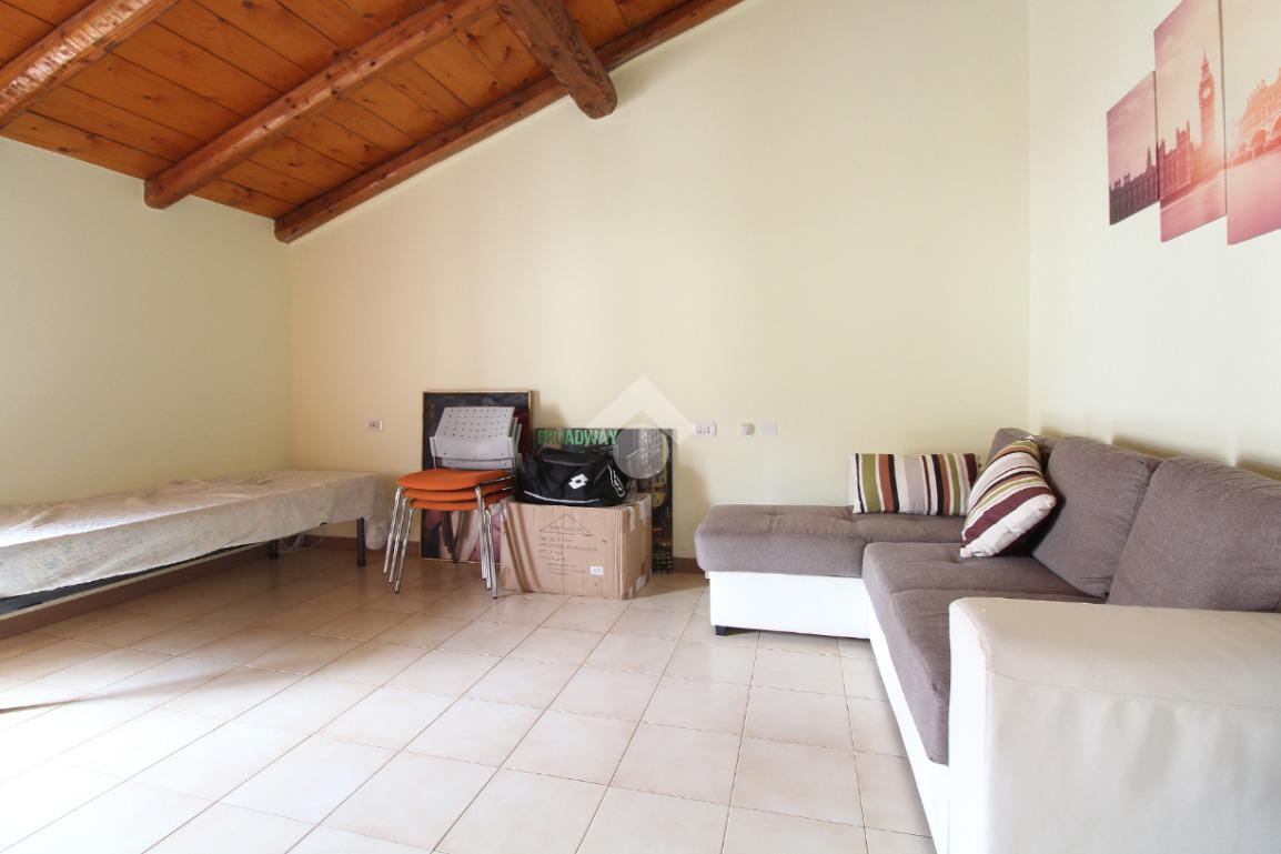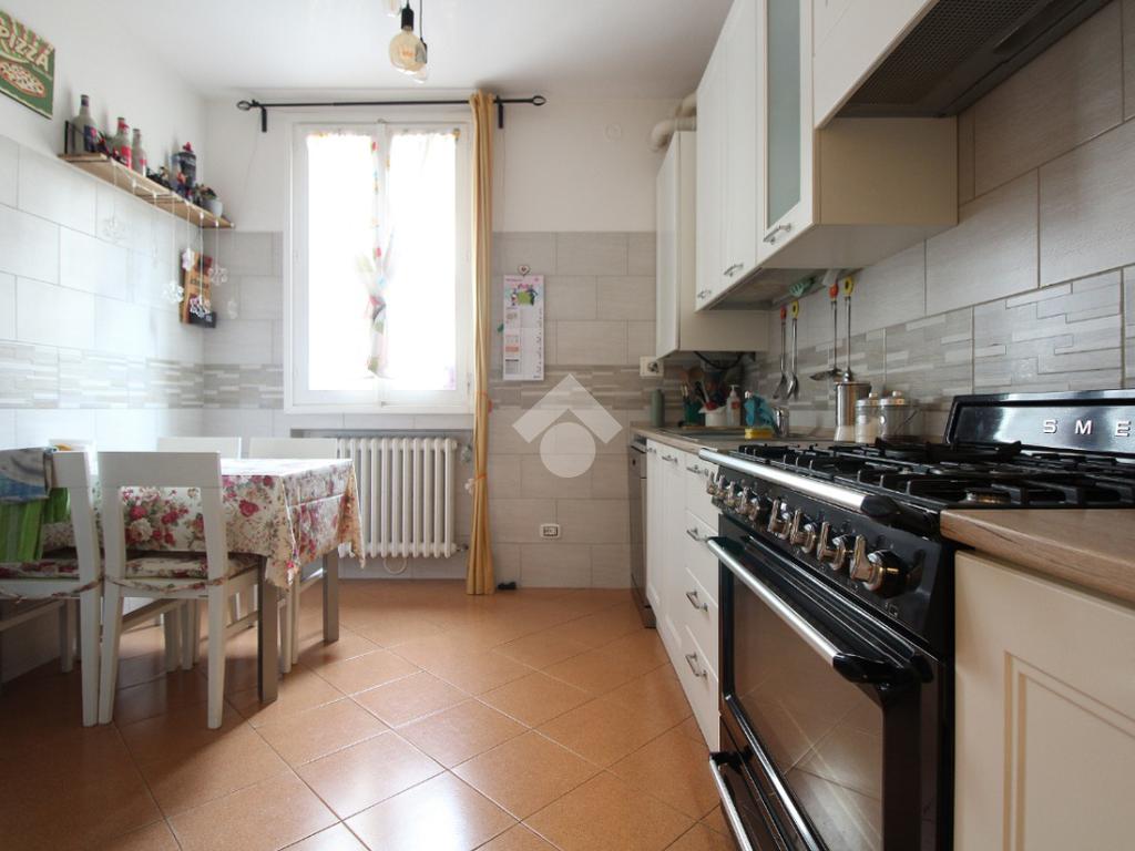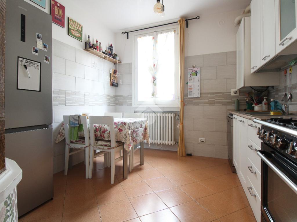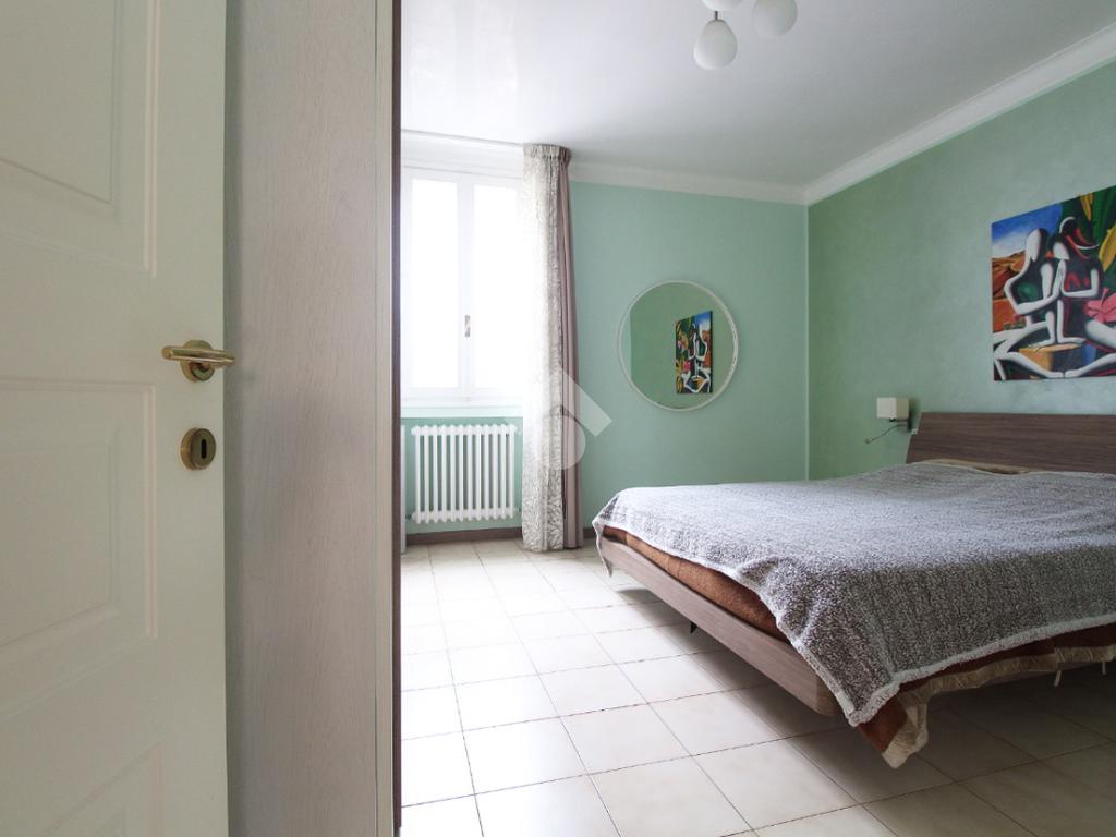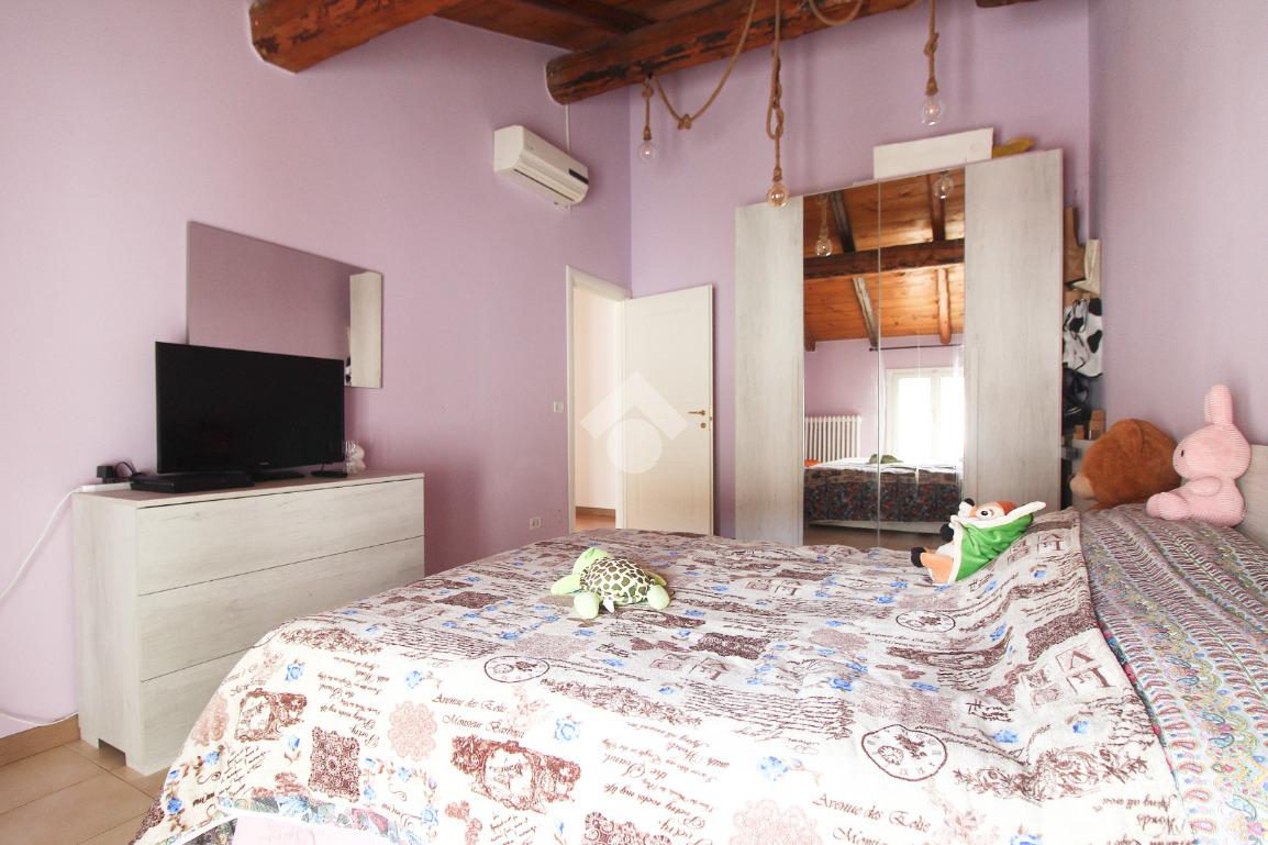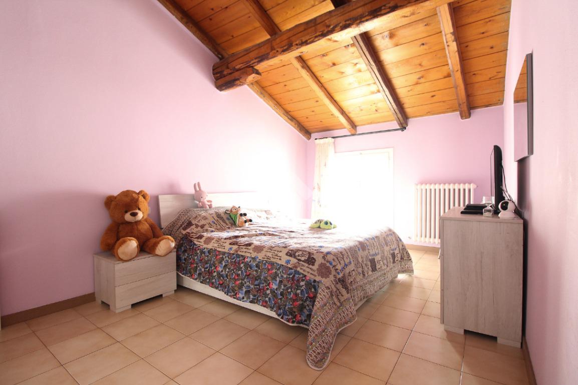 L'immobile è un appartamento che occupa gli ultimi due piani di una palazzina ubicata a San Pietro in Casale, nel cuore del paese. L'ingresso dell'abitazione, dalla pianta regolare e non angusto, permette di ospitare comodi armadi contenitori. La zona giorno è suddivisa in due ambienti: la cucina abitabile ed un ampio soggiorno con caratteristico affaccio sulla piazza del paese. Il piano si completa di camera, dalle dimensioni matrimoniali, e bagno servito da terrazzo. Il secondo ed ultimo livello, con travi in legno a vista, ospita la zona notte con altre due camere da letto e un ampio ambiente pluriuso. Sono presenti il secondo bagno ed un ripostiglio. La proprietà si completa, al piano terra, di cantina.