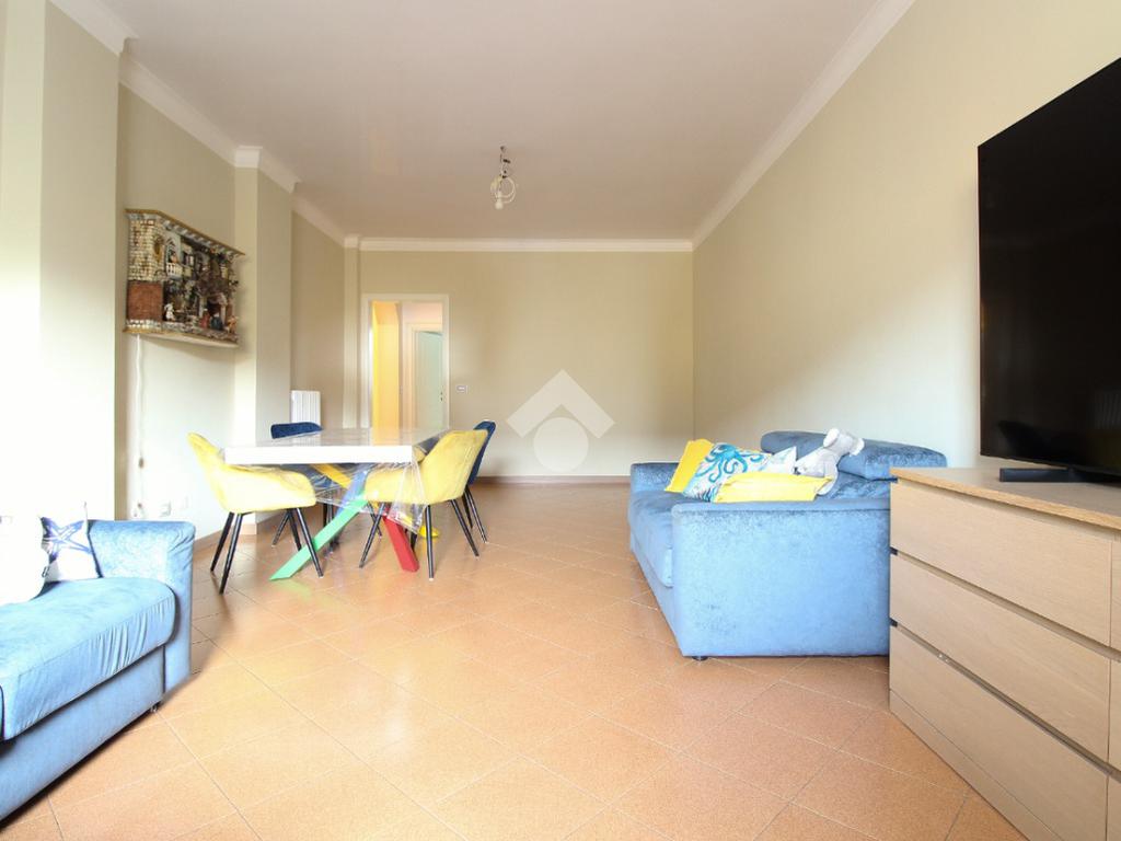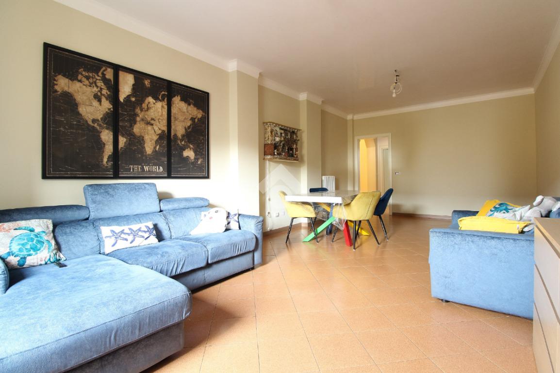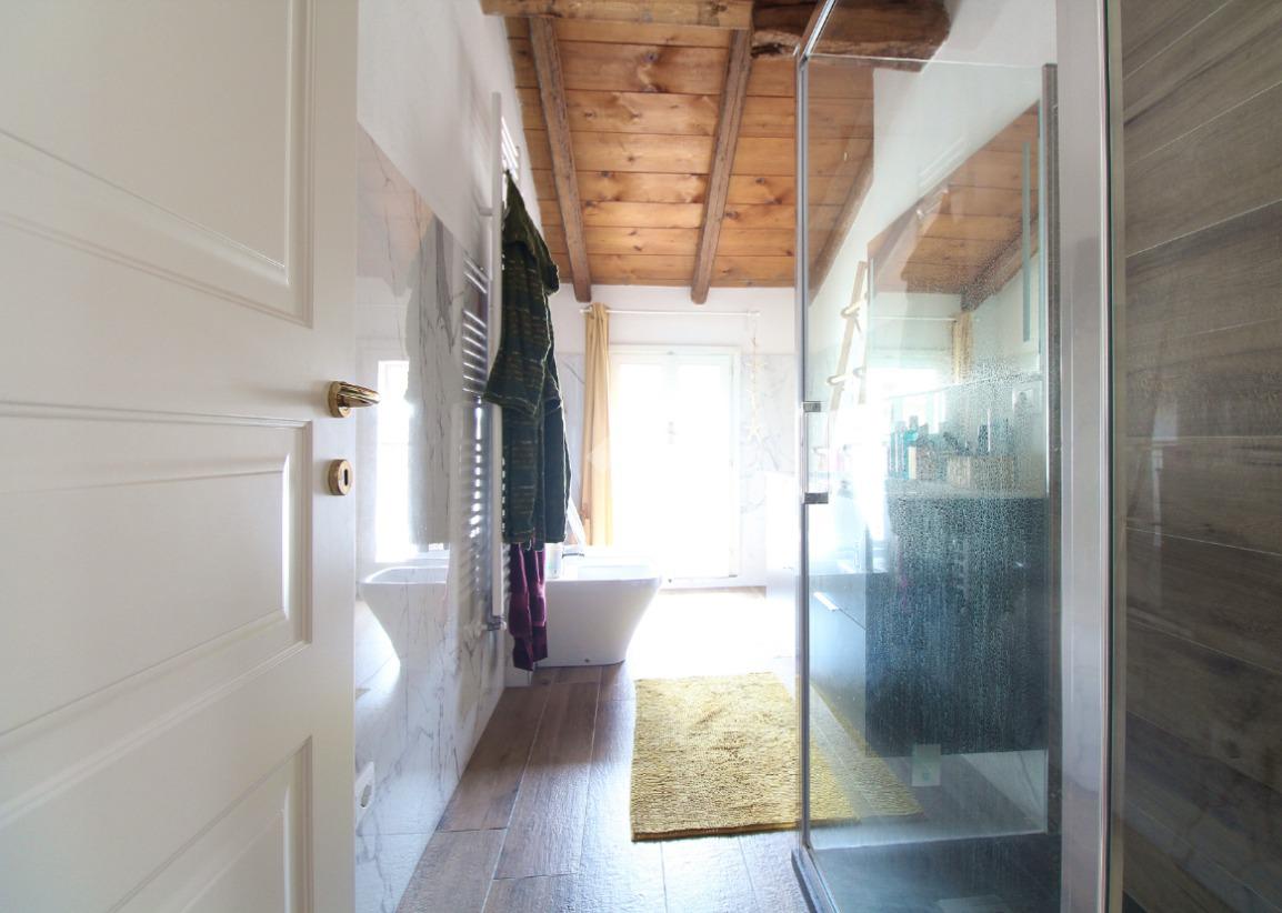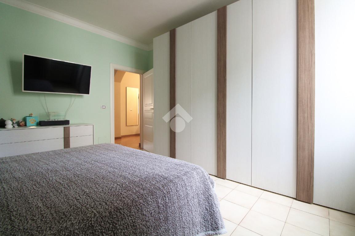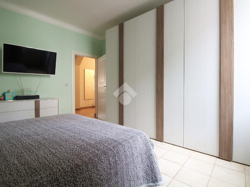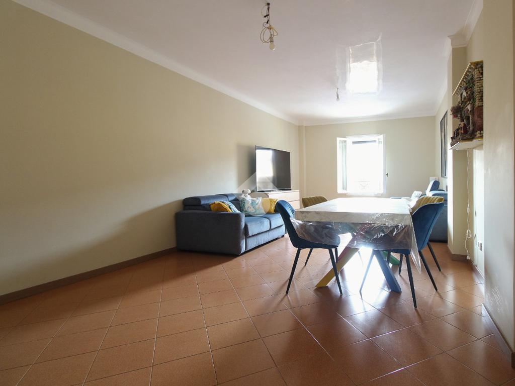 L'immobile è un appartamento che occupa gli ultimi due piani di una palazzina ubicata a San Pietro in Casale, nel cuore del paese. L'ingresso dell'abitazione, dalla pianta regolare e non angusto, permette di ospitare comodi armadi contenitori. La zona giorno è suddivisa in due ambienti: la cucina abitabile ed un ampio soggiorno con caratteristico affaccio sulla piazza del paese. Il piano si completa di camera, dalle dimensioni matrimoniali, e bagno servito da terrazzo. Il secondo ed ultimo livello, con travi in legno a vista, ospita la zona notte con altre due camere da letto e un ampio ambiente pluriuso. Sono presenti il secondo bagno ed un ripostiglio. La proprietà si completa, al piano terra, di cantina.