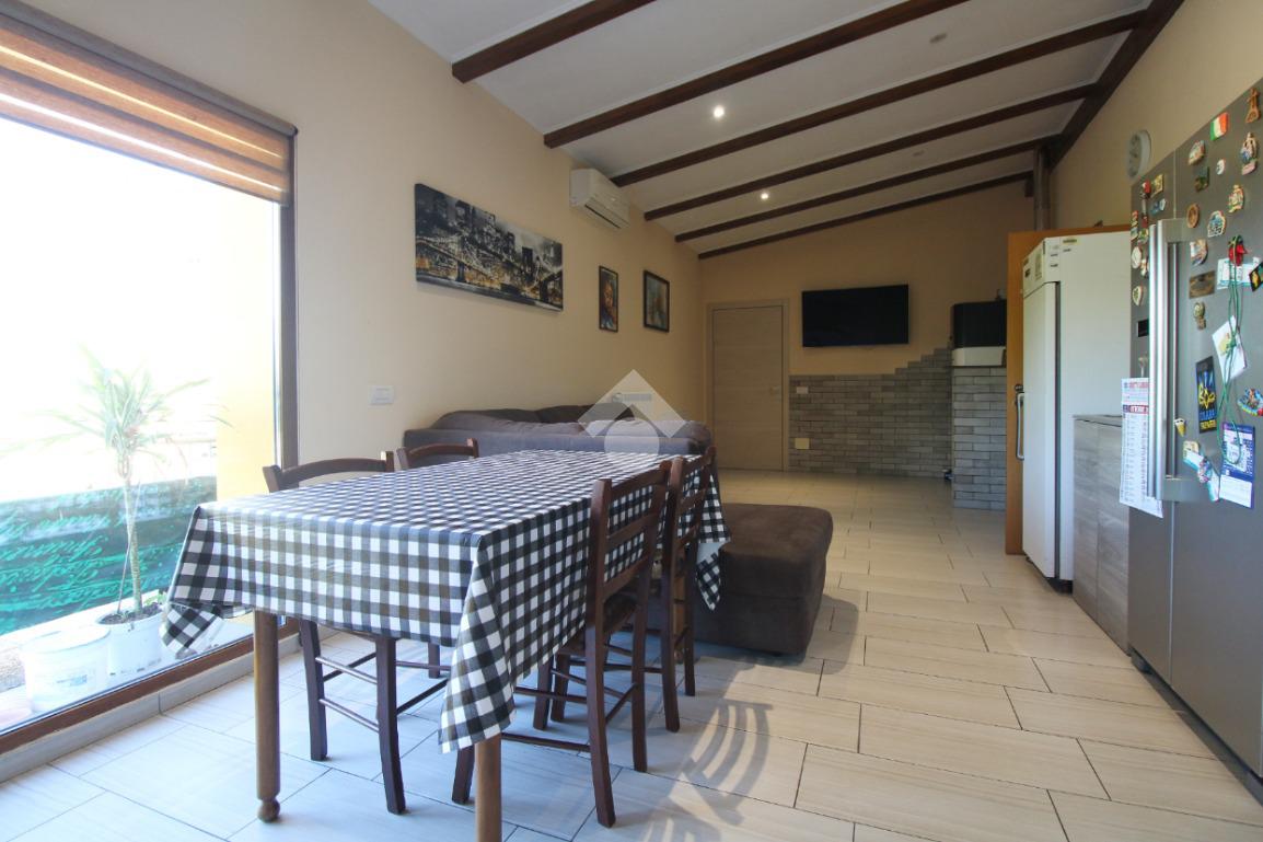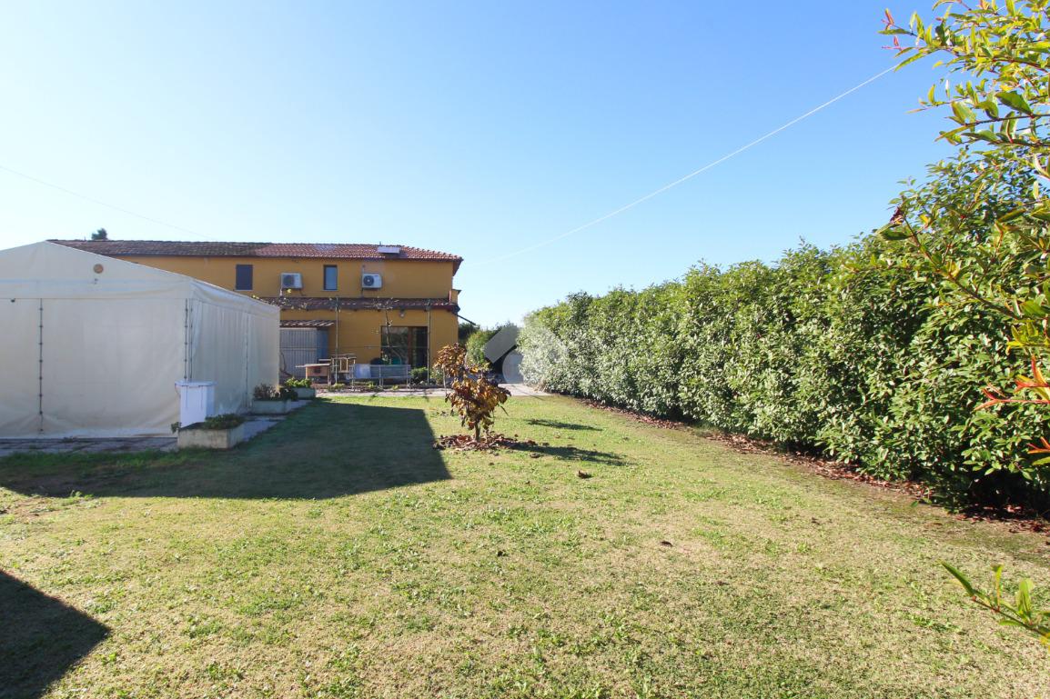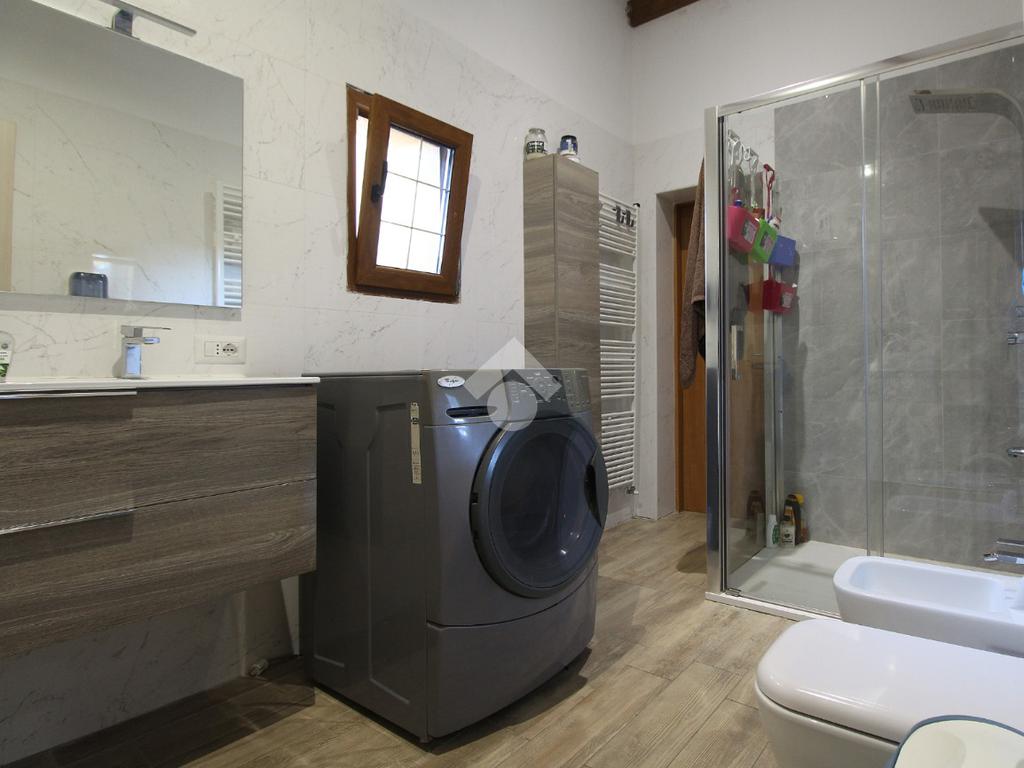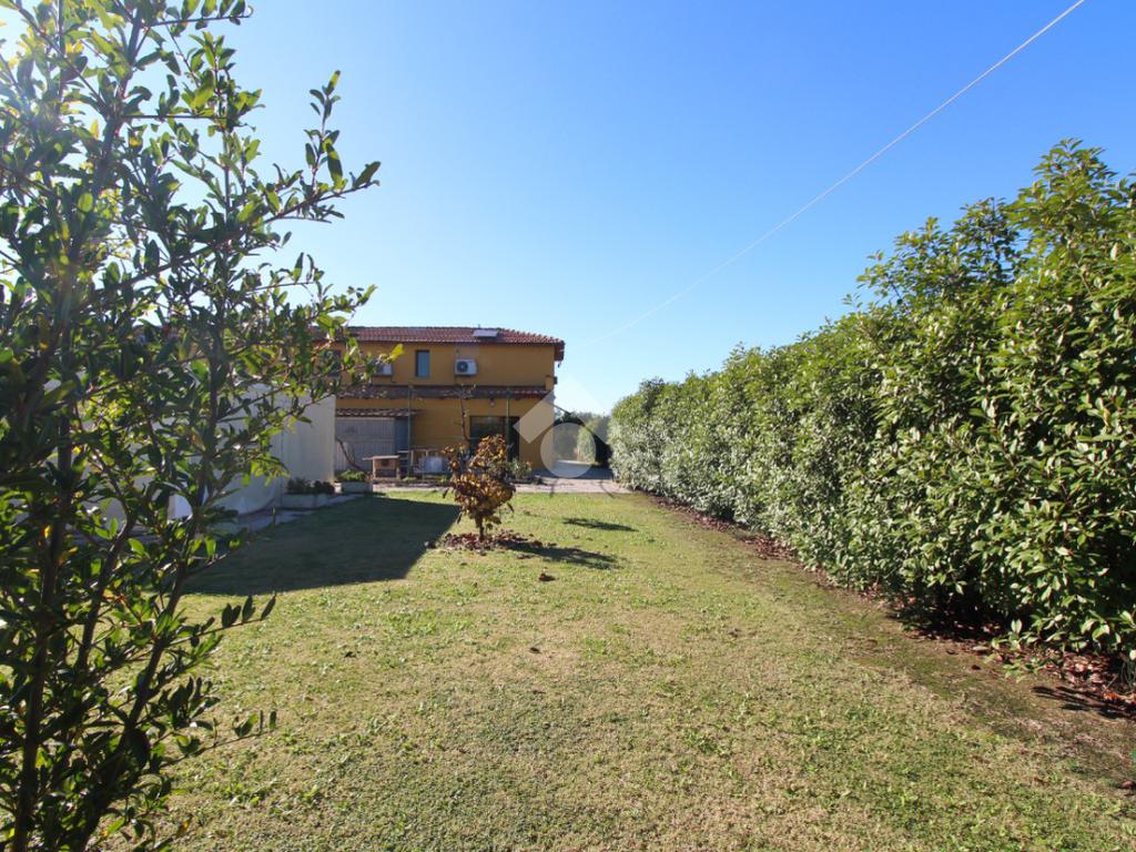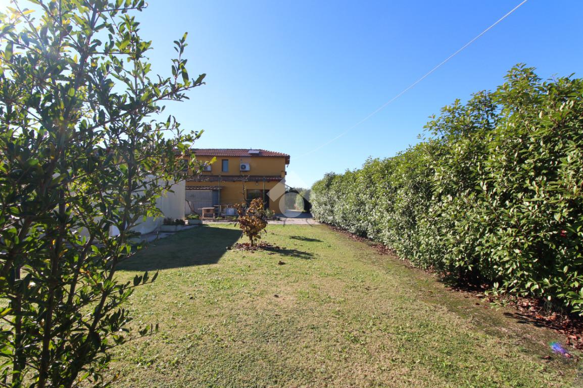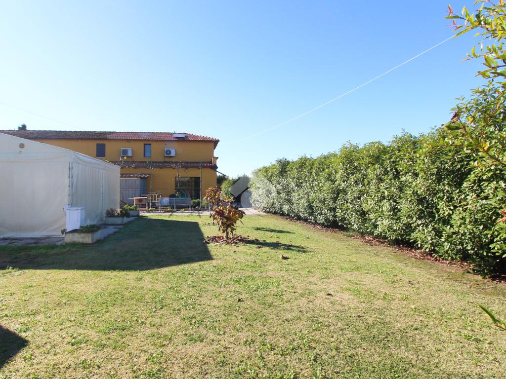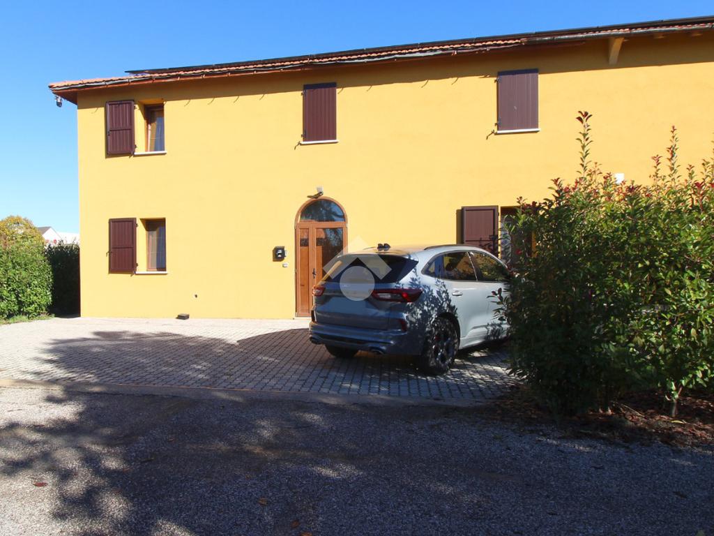 L'immobile è una porzione di casa libera su tre lati. Si trova a San Pietro in Casale, alle porte del paese. Le ristrutturazioni eseguite in più fasi hanno interessato sia l'interno che l'esterno trasformando completamente l'abitazione: di nuova realizzazione tutti gli impianti, con l'utilizzo di fonti energetiche rinnovabili, tutte le finiture, la facciata esterna, ora dotata di cappotto, il tetto. L'ingresso è indipendente con ampio spazio adibito a guardaroba ed organizzato con armadiature. La zona giorno ospita, senza alcuna separazione, il soggiorno e la cucina, quest'ultima con un bel affaccio sul giardino privato di circa 2.433 mq. Il piano terra comprende due camere da letto matrimoniali ed i servizi igienici. Il piano superiore ospita due ulteriori ambienti: una camera matrimoniale ed un ambiente passante attualmente organizzato come zona guardaroba. Esternamente è presente il garage di circa 13 mq. La proprietà esterna è piantumata con alcuni alberi da frutta e la privacy è garantita dall'alta siepe.