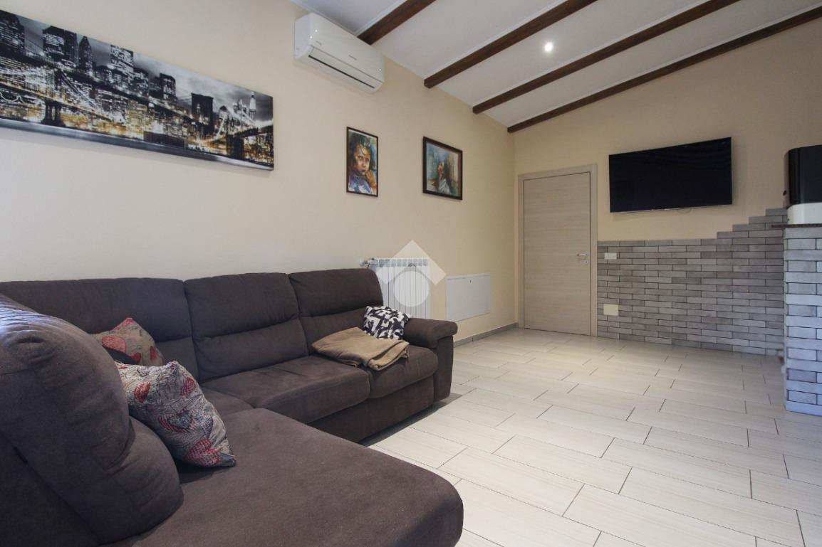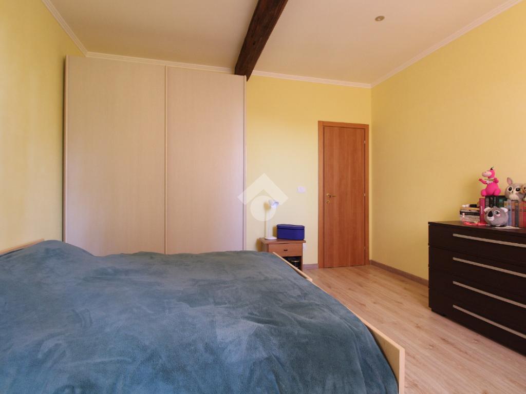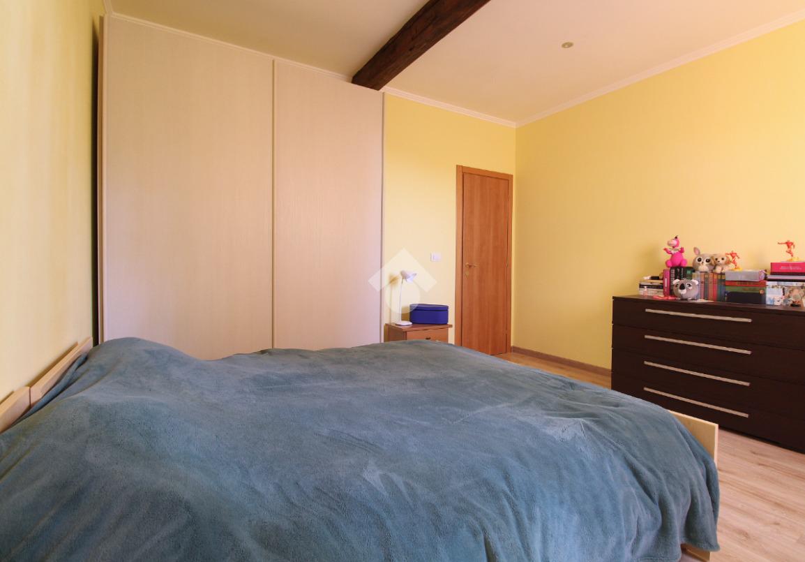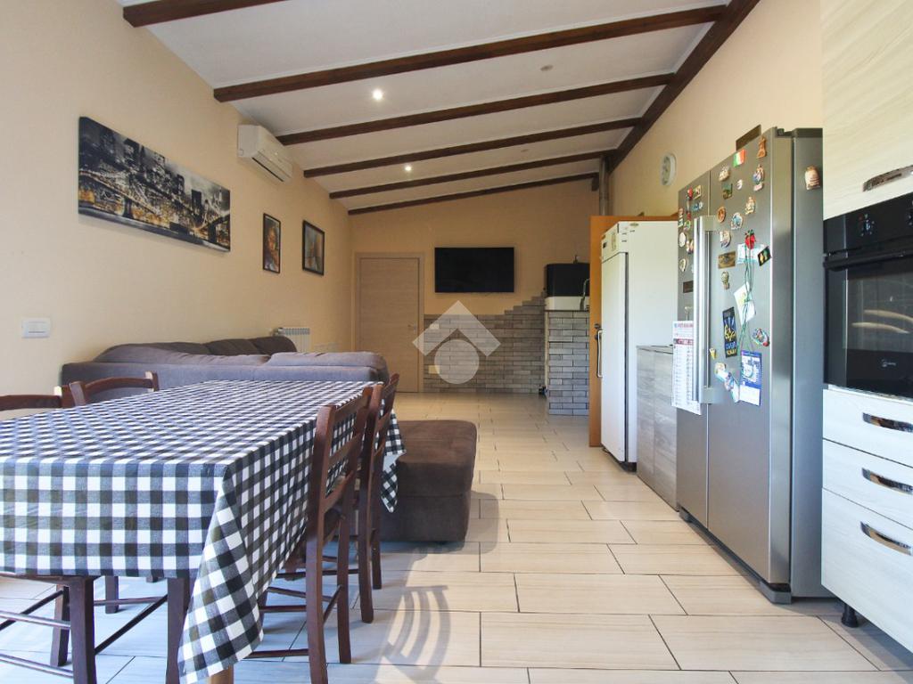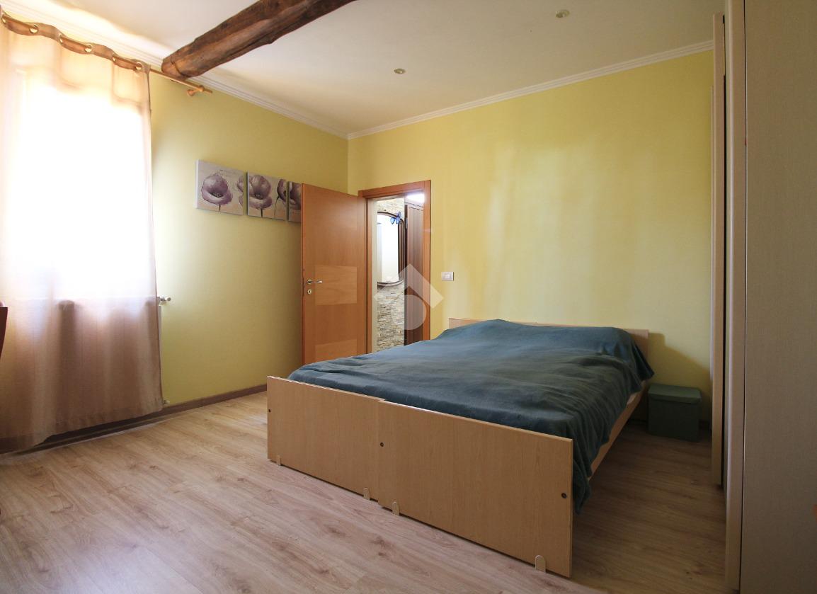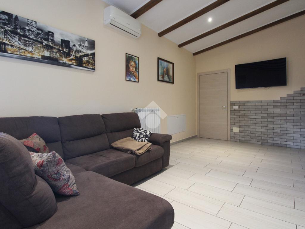 L'immobile è una porzione di casa libera su tre lati. Si trova a San Pietro in Casale, alle porte del paese. Le ristrutturazioni eseguite in più fasi hanno interessato sia l'interno che l'esterno trasformando completamente l'abitazione: di nuova realizzazione tutti gli impianti, con l'utilizzo di fonti energetiche rinnovabili, tutte le finiture, la facciata esterna, ora dotata di cappotto, il tetto. L'ingresso è indipendente con ampio spazio adibito a guardaroba ed organizzato con armadiature. La zona giorno ospita, senza alcuna separazione, il soggiorno e la cucina, quest'ultima con un bel affaccio sul giardino privato di circa 2.433 mq. Il piano terra comprende due camere da letto matrimoniali ed i servizi igienici. Il piano superiore ospita due ulteriori ambienti: una camera matrimoniale ed un ambiente passante attualmente organizzato come zona guardaroba. Esternamente è presente il garage di circa 13 mq. La proprietà esterna è piantumata con alcuni alberi da frutta e la privacy è garantita dall'alta siepe.