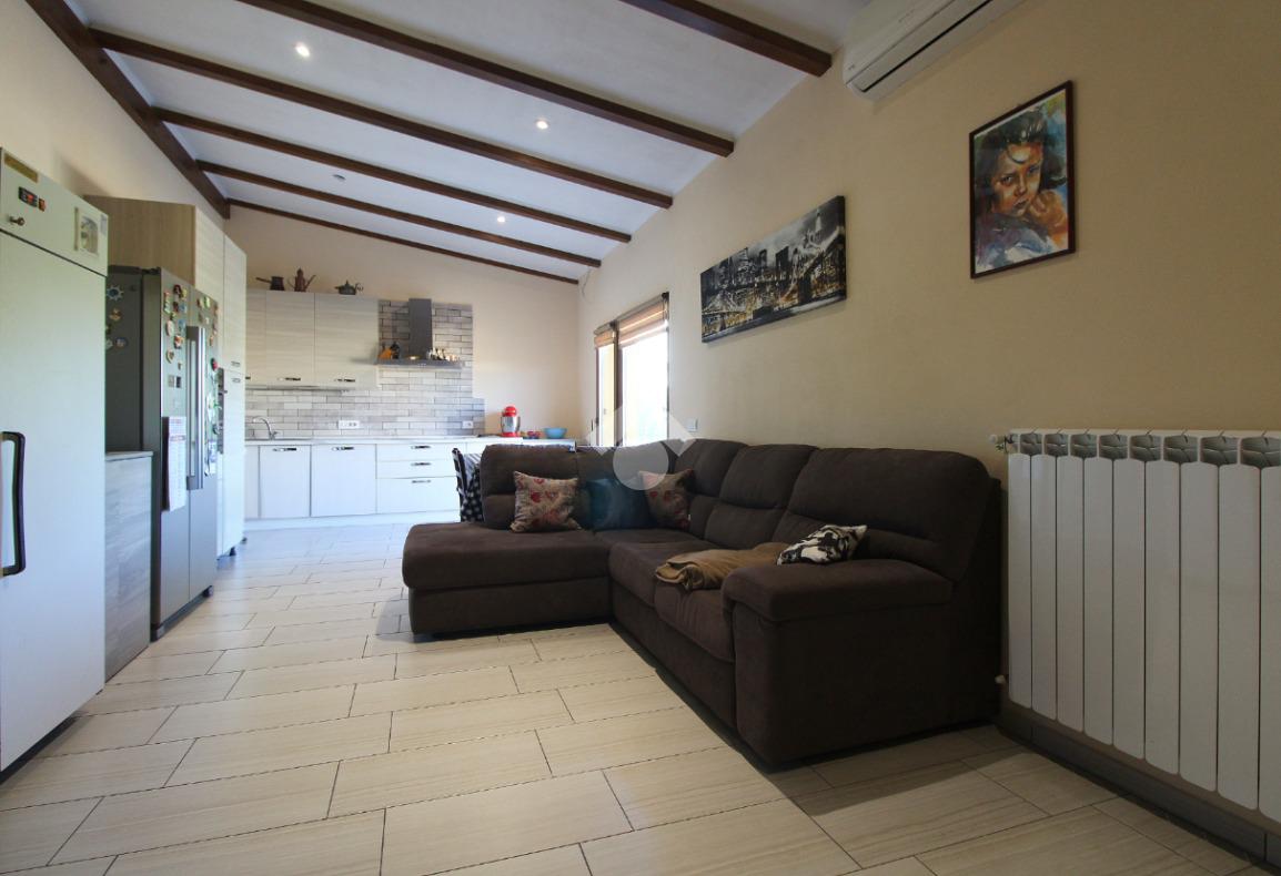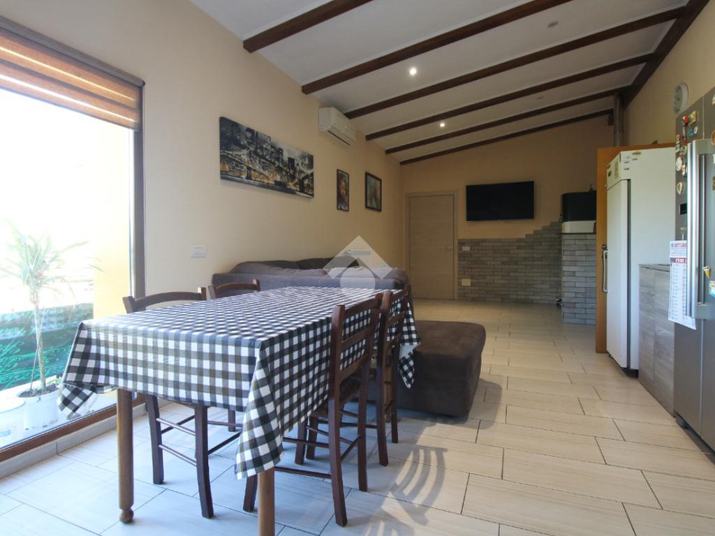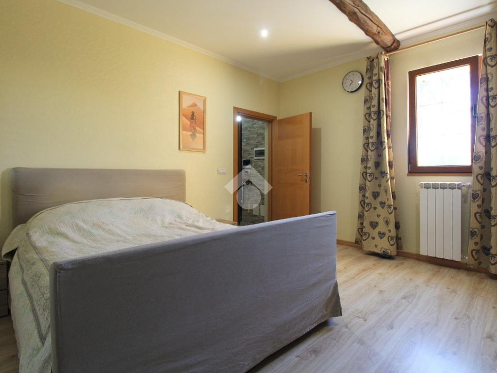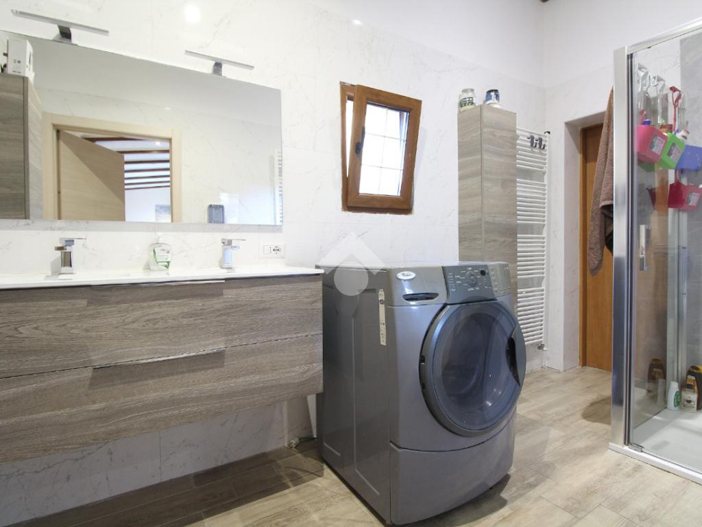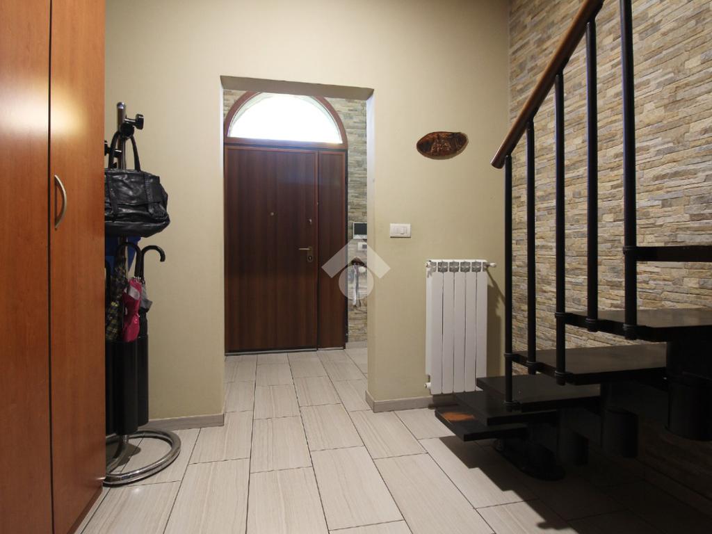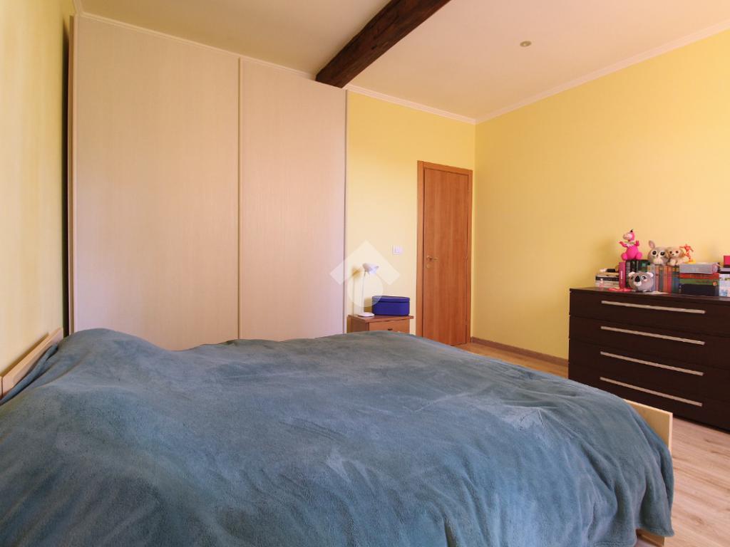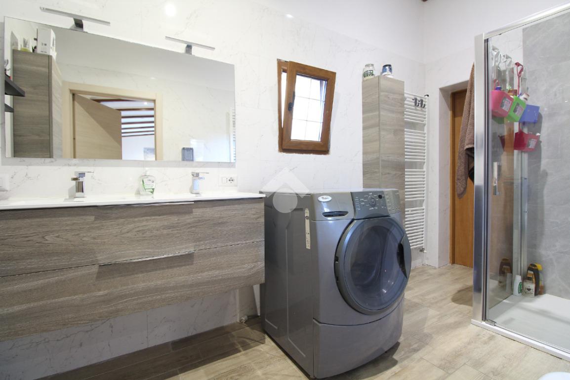 L'immobile è una porzione di casa libera su tre lati. Si trova a San Pietro in Casale, alle porte del paese. Le ristrutturazioni eseguite in più fasi hanno interessato sia l'interno che l'esterno trasformando completamente l'abitazione: di nuova realizzazione tutti gli impianti, con l'utilizzo di fonti energetiche rinnovabili, tutte le finiture, la facciata esterna, ora dotata di cappotto, il tetto. L'ingresso è indipendente con ampio spazio adibito a guardaroba ed organizzato con armadiature. La zona giorno ospita, senza alcuna separazione, il soggiorno e la cucina, quest'ultima con un bel affaccio sul giardino privato di circa 2.433 mq. Il piano terra comprende due camere da letto matrimoniali ed i servizi igienici. Il piano superiore ospita due ulteriori ambienti: una camera matrimoniale ed un ambiente passante attualmente organizzato come zona guardaroba. Esternamente è presente il garage di circa 13 mq. La proprietà esterna è piantumata con alcuni alberi da frutta e la privacy è garantita dall'alta siepe.