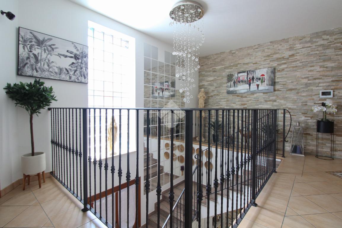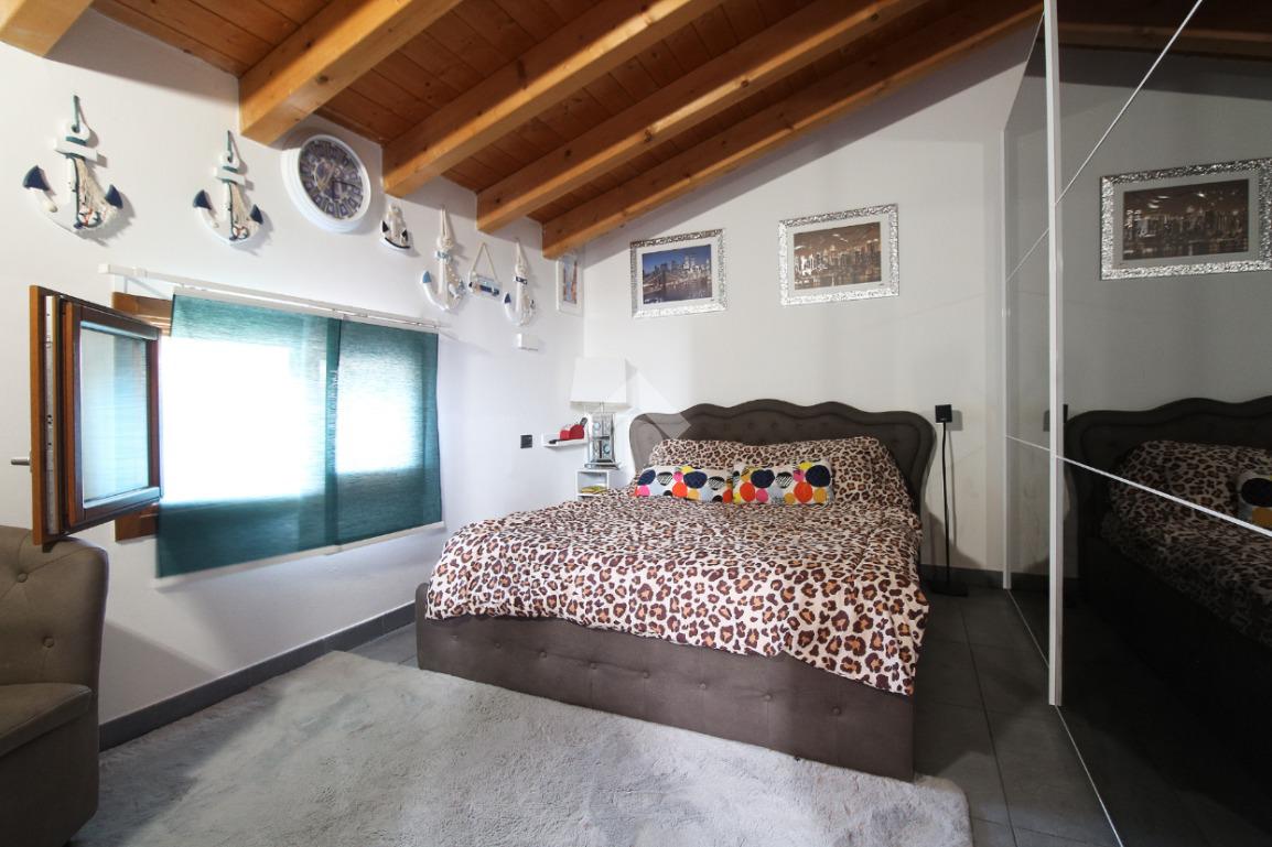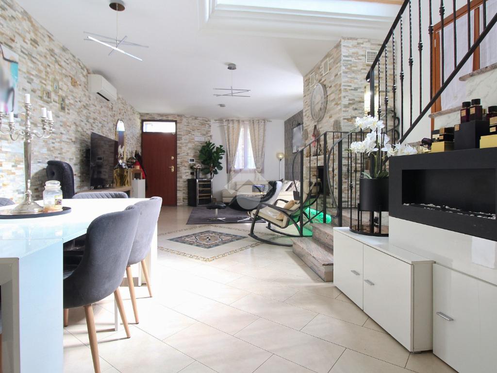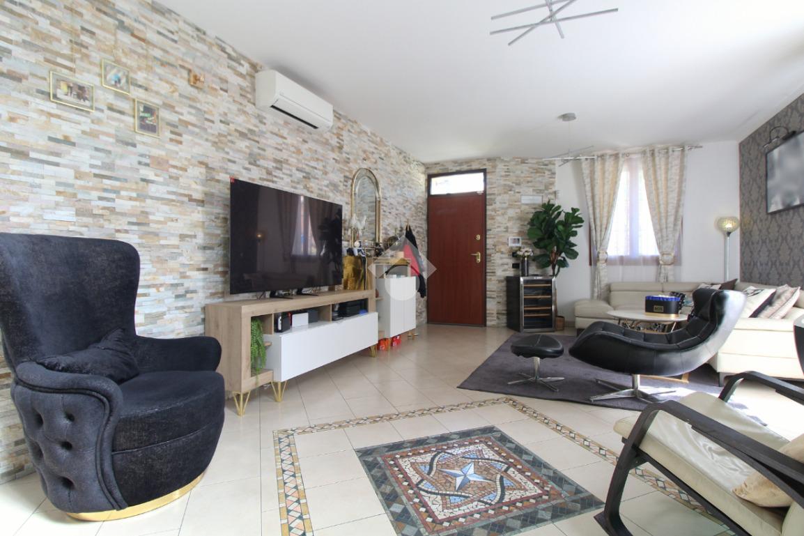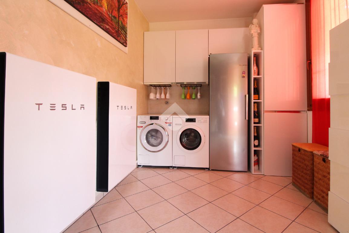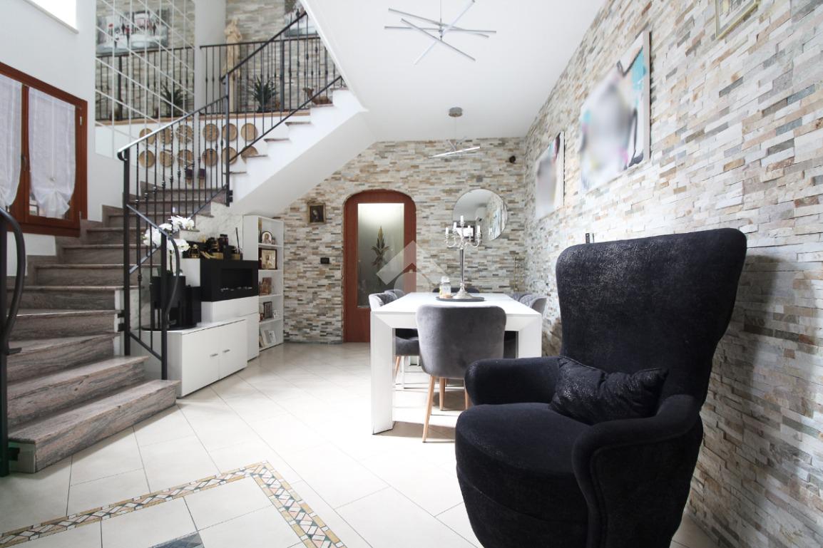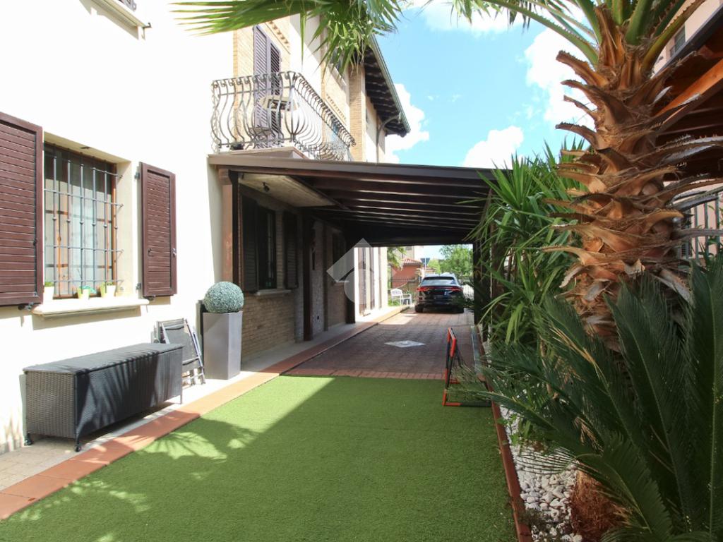 L'immobile è una porzione di bifamiliare circondata su tre lati da corte privata di circa 200 mq. Costruita nel 2007, ha subìto un ulteriore restyling nel 2017, con l'aggiunta di un impianto fotovoltaico di 27 kwh e due batterie d'accumulo. Sorge nel paese di San Pietro in Casale, in una zona esclusivamente residenziale riparata dal traffico. Internamente l'abitazione è organizzata su tre livelli, tutti serviti da bagno. La porta d'ingresso si apre su un ampio soggiorno caratterizzato da camino; la cucina è abitabile e occupa un ambiente indipendente. Il piano terra si completa di bagno e zona lavanderia che accede, sul retro, ad una comoda veranda protetta da teli motorizzati. Il piano superiore è dedicato agli ambienti notte distribuiti da un disimpegno che diventa molto più di una zona di passaggio poiché arredato e illuminato da vetrate che sfruttano tutta la sua altezza. Il piano è caratterizzato da tre camere da letto: la camera padronale servita da bagno e cabina armadio, una seconda camera matrimoniale ed una cameretta con affaccio su balcone. Anche la zona notte ha i servizi igienici. Infine, il piano mansarda di circa 80 mq, interamente rifinito e caratterizzato da una zona giorno con angolo cottura, due camere, un bagno ed un ripostiglio. La casa è dotata di riscaldamento a pavimento, impianto di aria condizionata in tutti gli ambienti, di sistema di allarme. In ottime condizioni e completa di tutto l'arredo, è pronta per essere abitata.