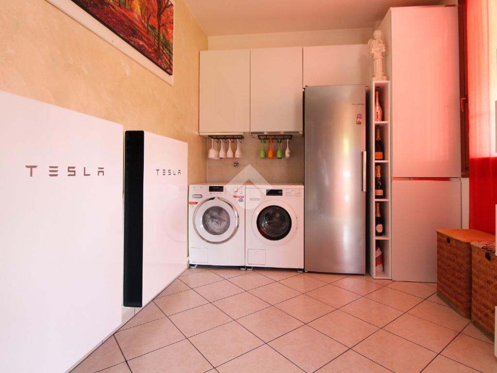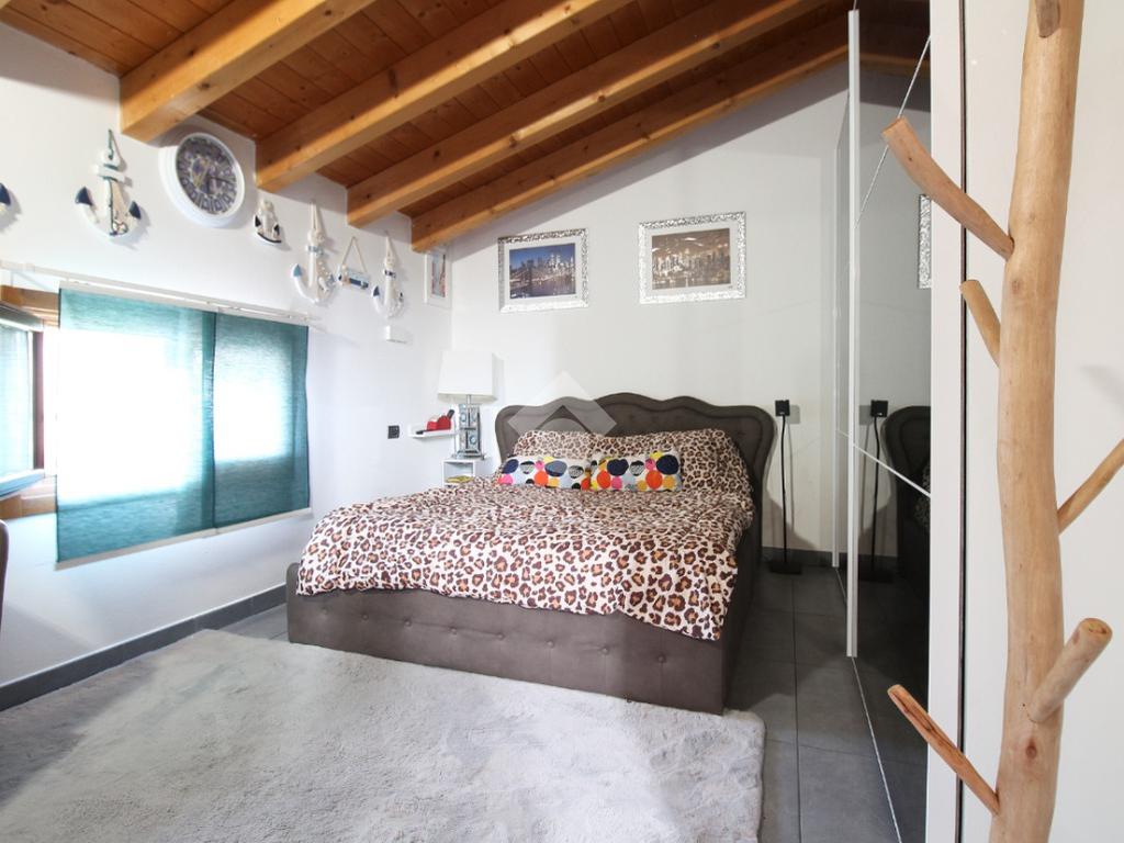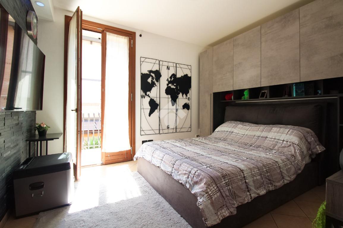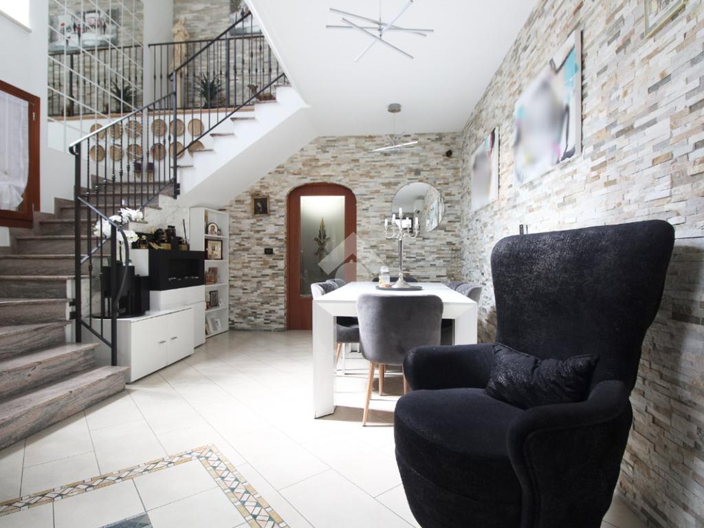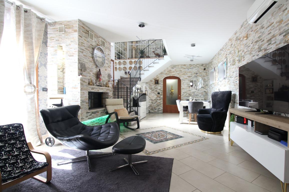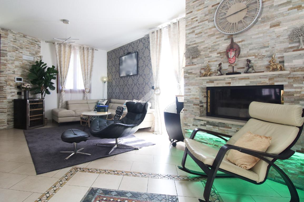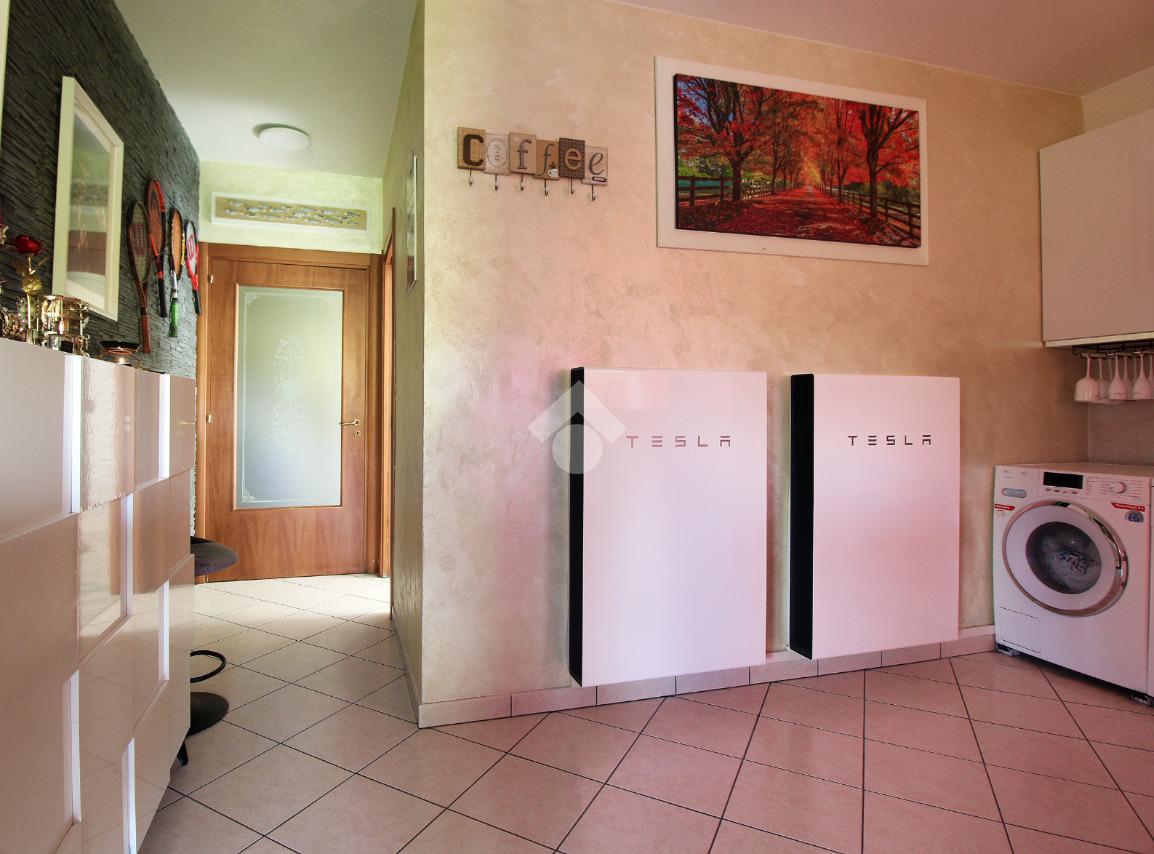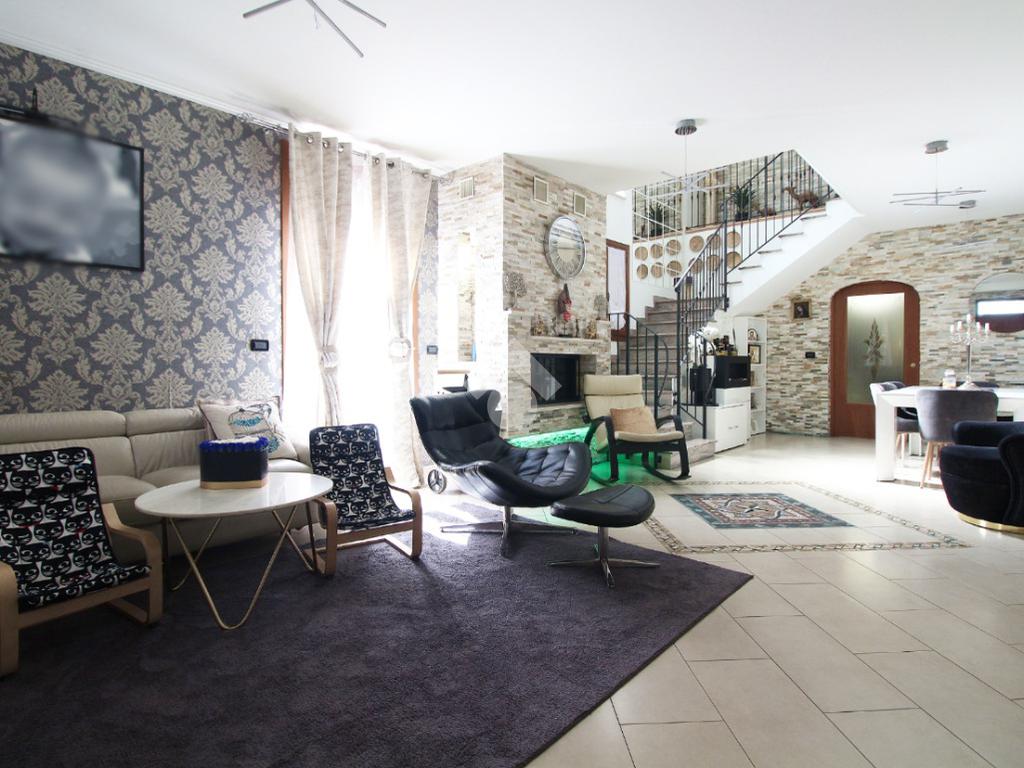 L'immobile è una porzione di bifamiliare circondata su tre lati da corte privata di circa 200 mq. Costruita nel 2007, ha subìto un ulteriore restyling nel 2017, con l'aggiunta di un impianto fotovoltaico di 27 kwh e due batterie d'accumulo. Sorge nel paese di San Pietro in Casale, in una zona esclusivamente residenziale riparata dal traffico. Internamente l'abitazione è organizzata su tre livelli, tutti serviti da bagno. La porta d'ingresso si apre su un ampio soggiorno caratterizzato da camino; la cucina è abitabile e occupa un ambiente indipendente. Il piano terra si completa di bagno e zona lavanderia che accede, sul retro, ad una comoda veranda protetta da teli motorizzati. Il piano superiore è dedicato agli ambienti notte distribuiti da un disimpegno che diventa molto più di una zona di passaggio poiché arredato e illuminato da vetrate che sfruttano tutta la sua altezza. Il piano è caratterizzato da tre camere da letto: la camera padronale servita da bagno e cabina armadio, una seconda camera matrimoniale ed una cameretta con affaccio su balcone. Anche la zona notte ha i servizi igienici. Infine, il piano mansarda di circa 80 mq, interamente rifinito e caratterizzato da una zona giorno con angolo cottura, due camere, un bagno ed un ripostiglio. La casa è dotata di riscaldamento a pavimento, impianto di aria condizionata in tutti gli ambienti, di sistema di allarme. In ottime condizioni e completa di tutto l'arredo, è pronta per essere abitata.