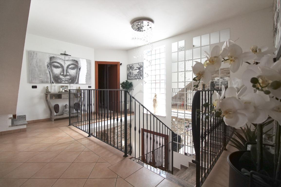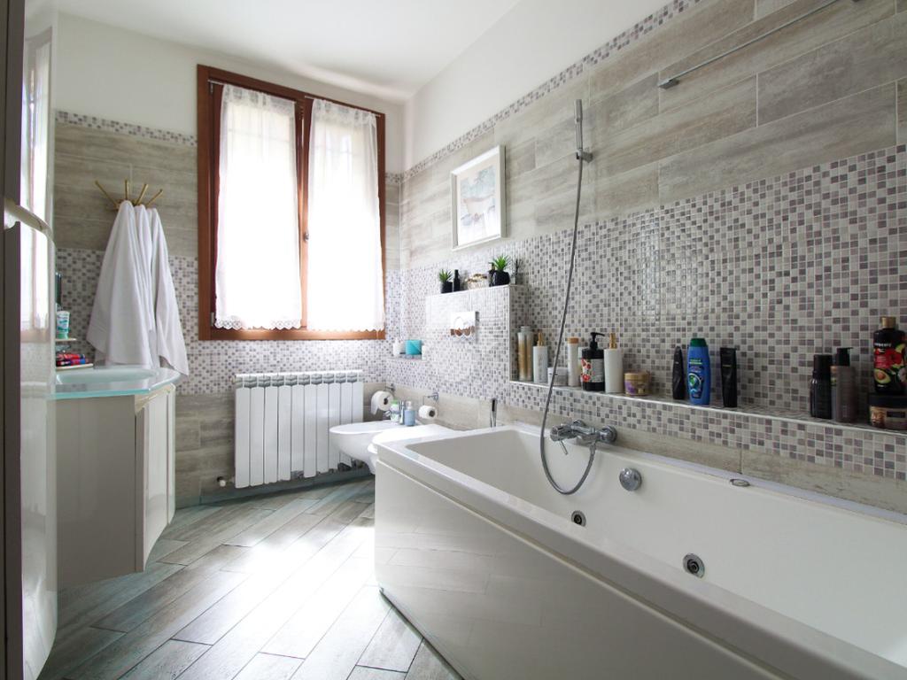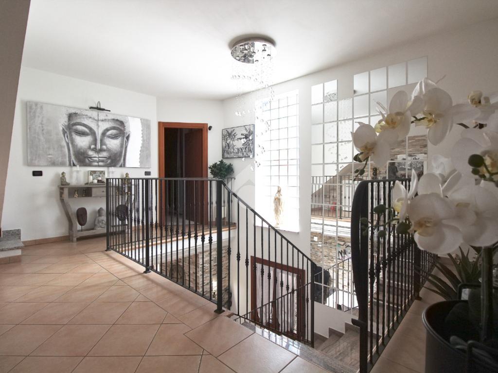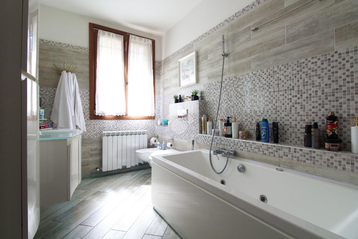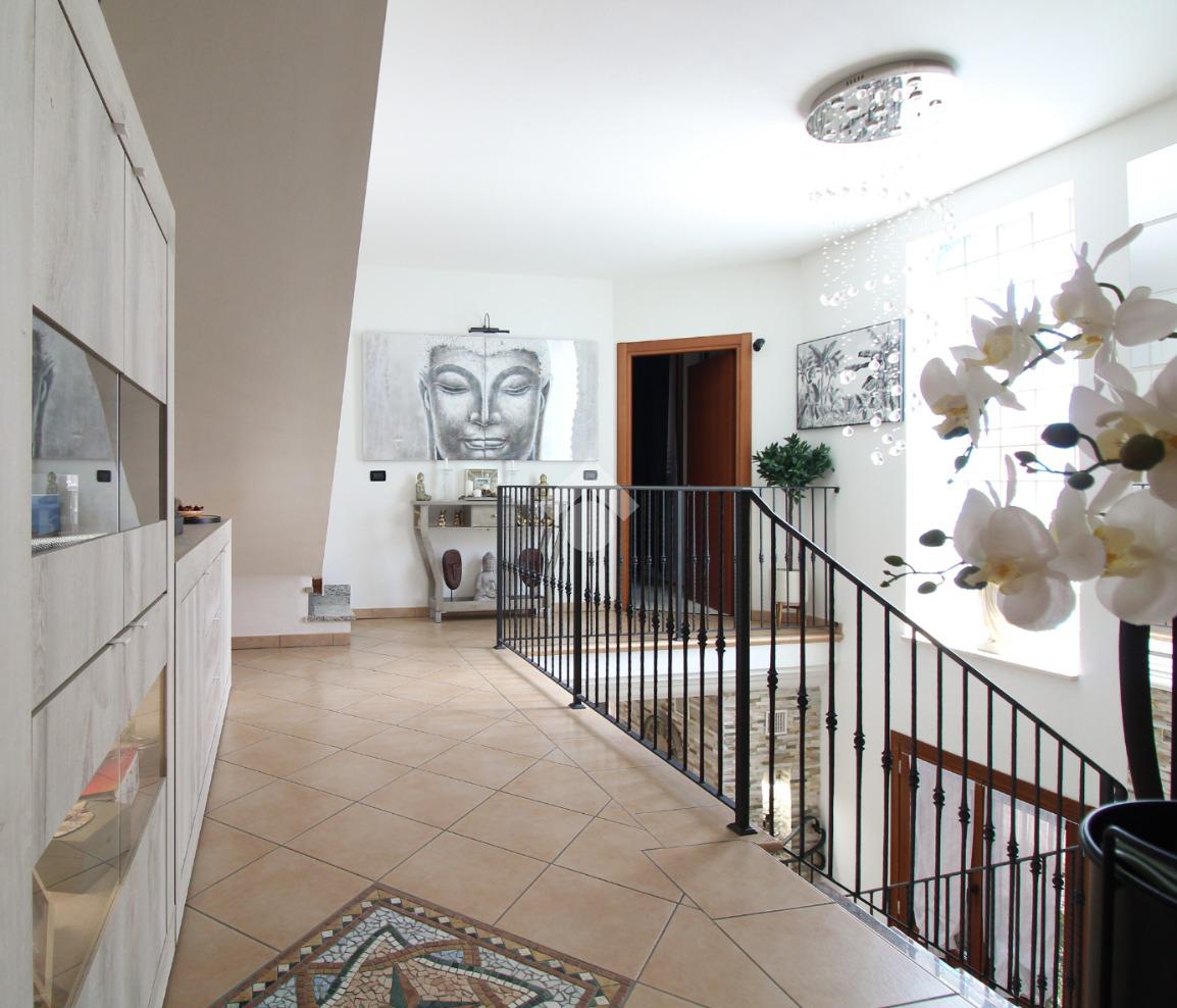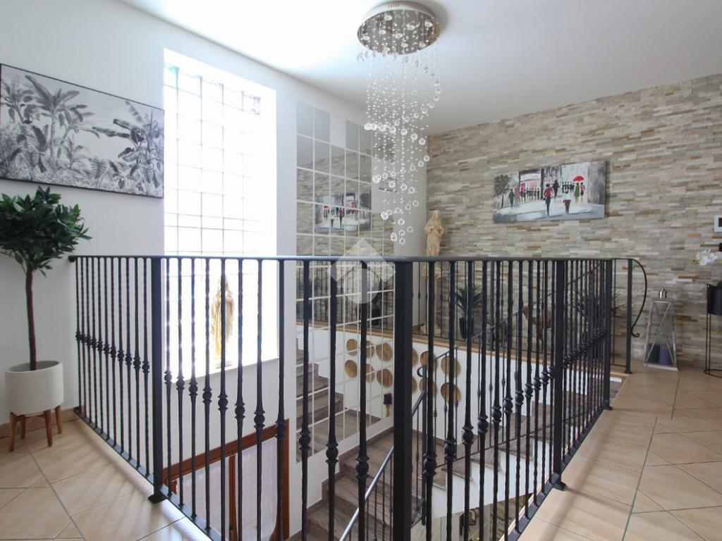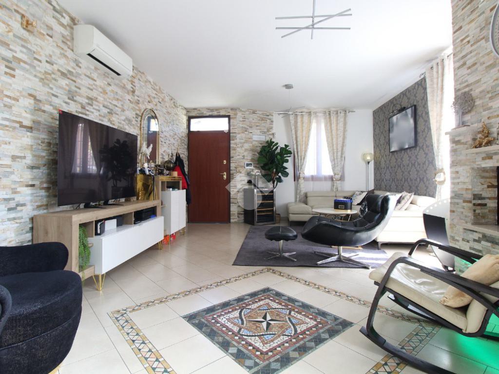 L'immobile è una porzione di bifamiliare circondata su tre lati da corte privata di circa 200 mq. Costruita nel 2007, ha subìto un ulteriore restyling nel 2017, con l'aggiunta di un impianto fotovoltaico di 27 kwh e due batterie d'accumulo. Sorge nel paese di San Pietro in Casale, in una zona esclusivamente residenziale riparata dal traffico. Internamente l'abitazione è organizzata su tre livelli, tutti serviti da bagno. La porta d'ingresso si apre su un ampio soggiorno caratterizzato da camino; la cucina è abitabile e occupa un ambiente indipendente. Il piano terra si completa di bagno e zona lavanderia che accede, sul retro, ad una comoda veranda protetta da teli motorizzati. Il piano superiore è dedicato agli ambienti notte distribuiti da un disimpegno che diventa molto più di una zona di passaggio poiché arredato e illuminato da vetrate che sfruttano tutta la sua altezza. Il piano è caratterizzato da tre camere da letto: la camera padronale servita da bagno e cabina armadio, una seconda camera matrimoniale ed una cameretta con affaccio su balcone. Anche la zona notte ha i servizi igienici. Infine, il piano mansarda di circa 80 mq, interamente rifinito e caratterizzato da una zona giorno con angolo cottura, due camere, un bagno ed un ripostiglio. La casa è dotata di riscaldamento a pavimento, impianto di aria condizionata in tutti gli ambienti, di sistema di allarme. In ottime condizioni e completa di tutto l'arredo, è pronta per essere abitata.