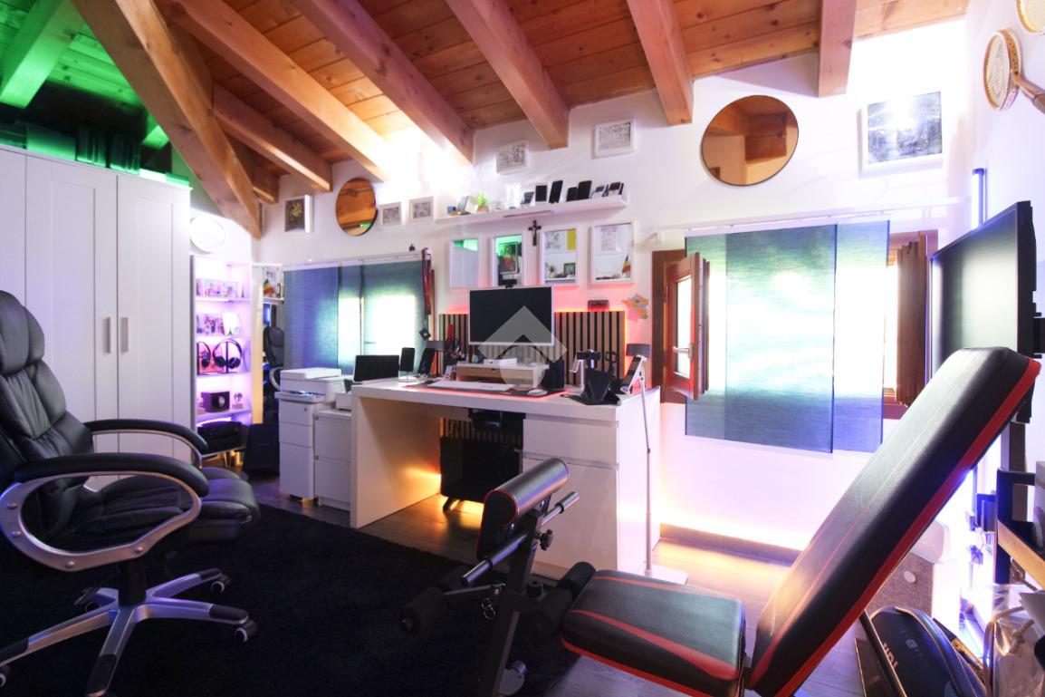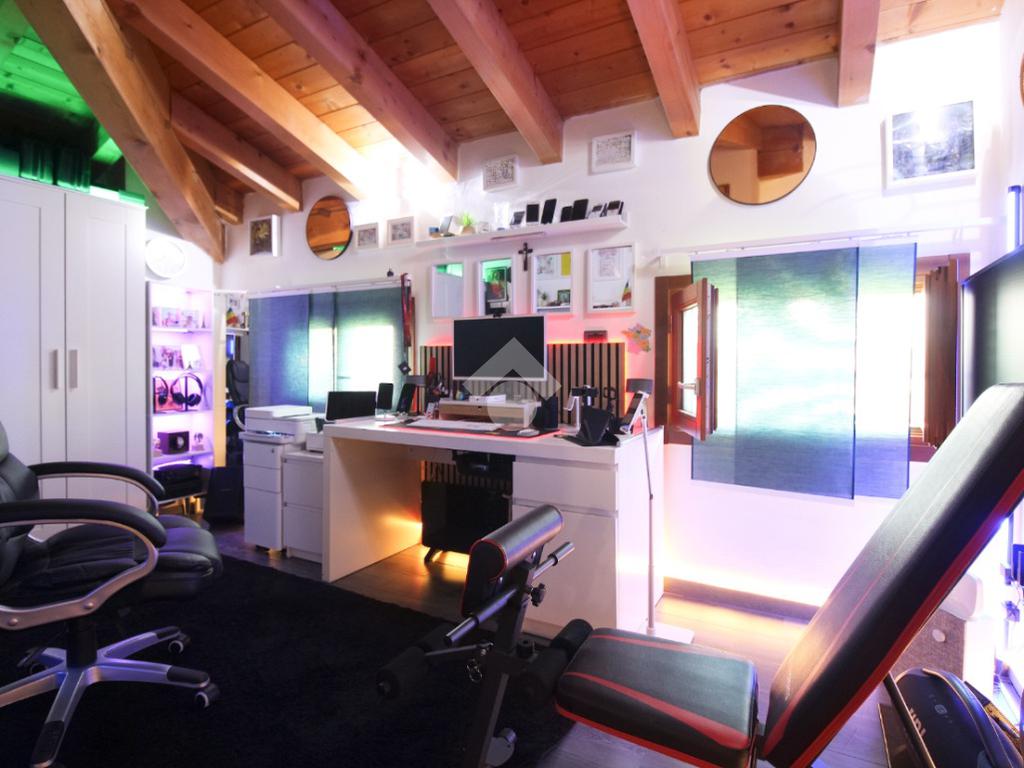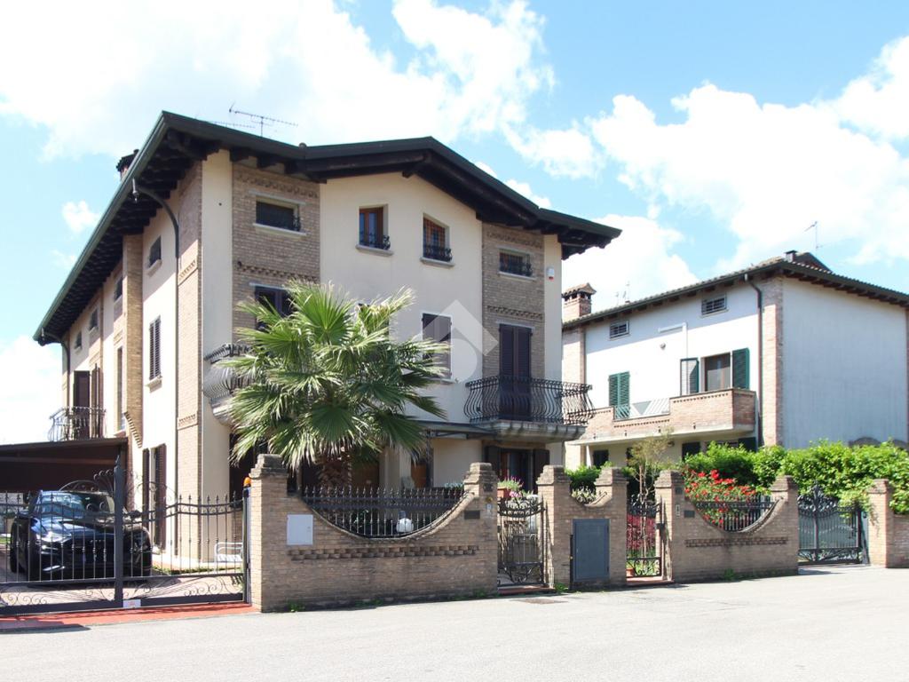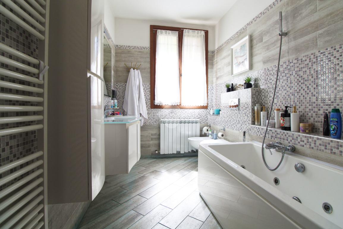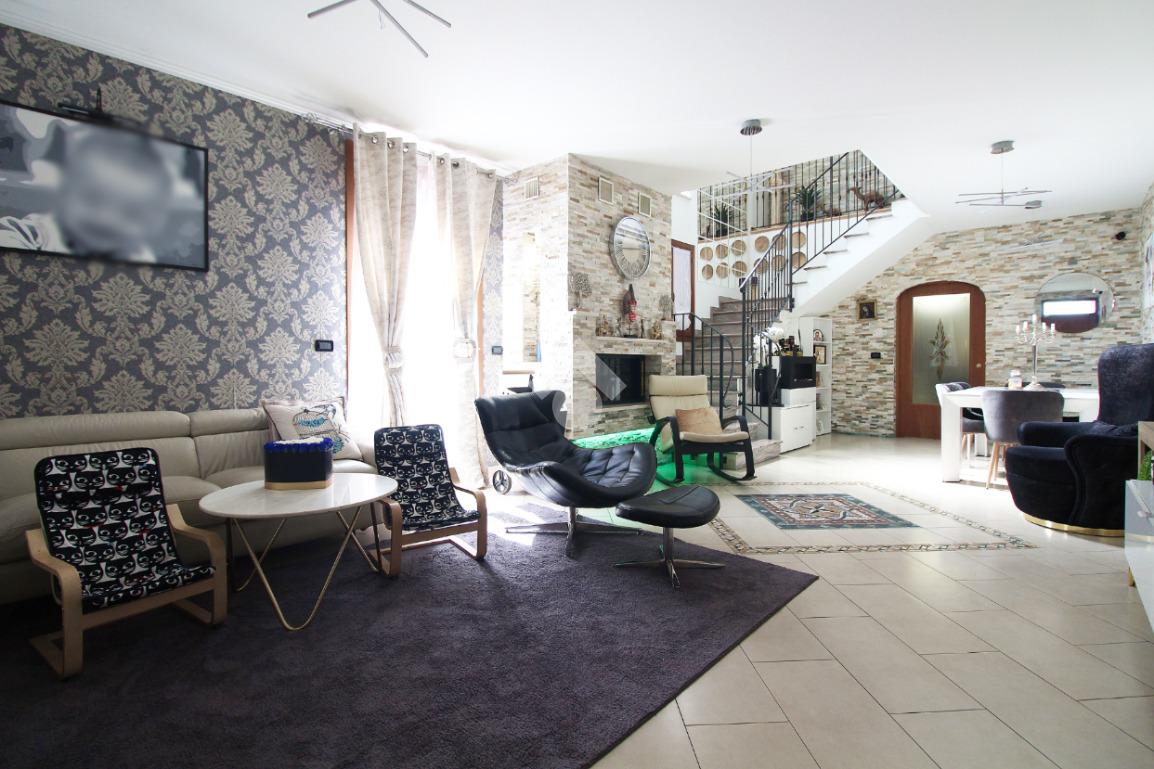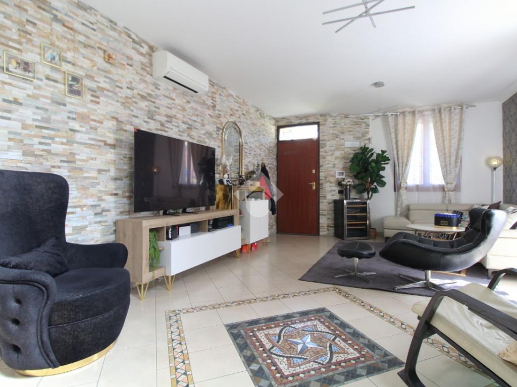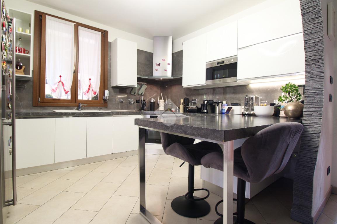 L'immobile è una porzione di bifamiliare circondata su tre lati da corte privata di circa 200 mq. Costruita nel 2007, ha subìto un ulteriore restyling nel 2017, con l'aggiunta di un impianto fotovoltaico di 27 kwh e due batterie d'accumulo. Sorge nel paese di San Pietro in Casale, in una zona esclusivamente residenziale riparata dal traffico. Internamente l'abitazione è organizzata su tre livelli, tutti serviti da bagno. La porta d'ingresso si apre su un ampio soggiorno caratterizzato da camino; la cucina è abitabile e occupa un ambiente indipendente. Il piano terra si completa di bagno e zona lavanderia che accede, sul retro, ad una comoda veranda protetta da teli motorizzati. Il piano superiore è dedicato agli ambienti notte distribuiti da un disimpegno che diventa molto più di una zona di passaggio poiché arredato e illuminato da vetrate che sfruttano tutta la sua altezza. Il piano è caratterizzato da tre camere da letto: la camera padronale servita da bagno e cabina armadio, una seconda camera matrimoniale ed una cameretta con affaccio su balcone. Anche la zona notte ha i servizi igienici. Infine, il piano mansarda di circa 80 mq, interamente rifinito e caratterizzato da una zona giorno con angolo cottura, due camere, un bagno ed un ripostiglio. La casa è dotata di riscaldamento a pavimento, impianto di aria condizionata in tutti gli ambienti, di sistema di allarme. In ottime condizioni e completa di tutto l'arredo, è pronta per essere abitata.