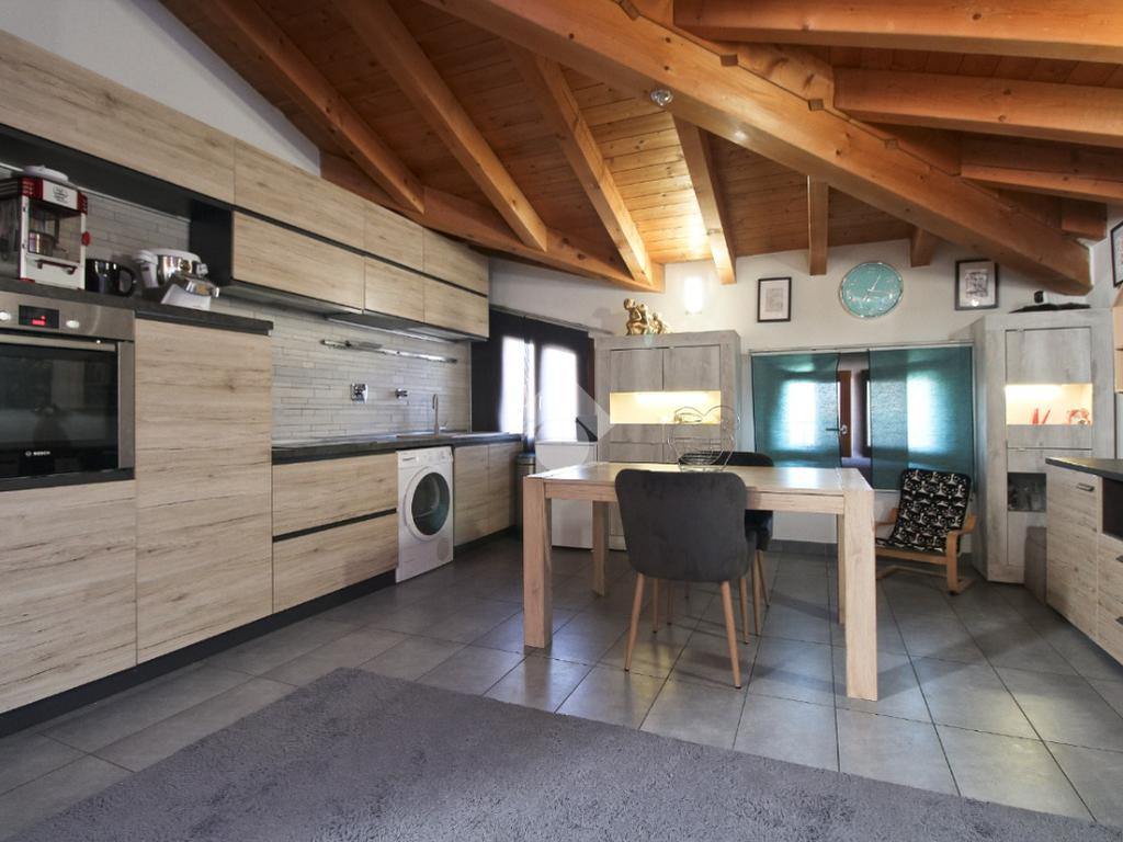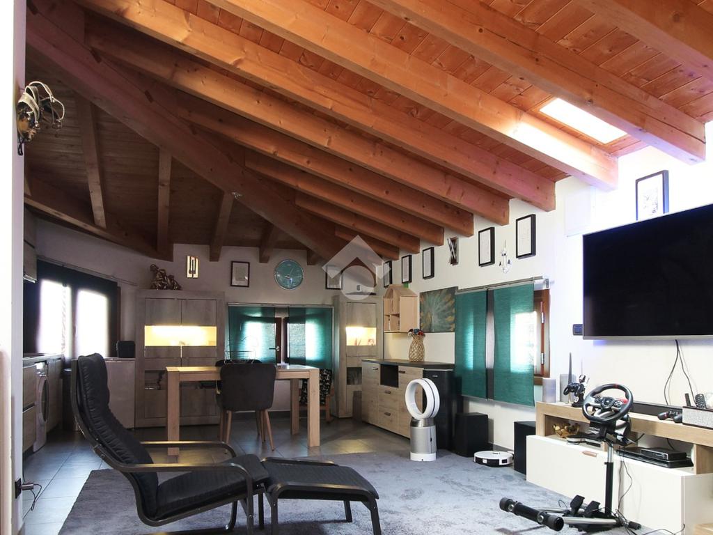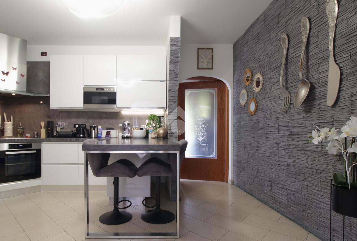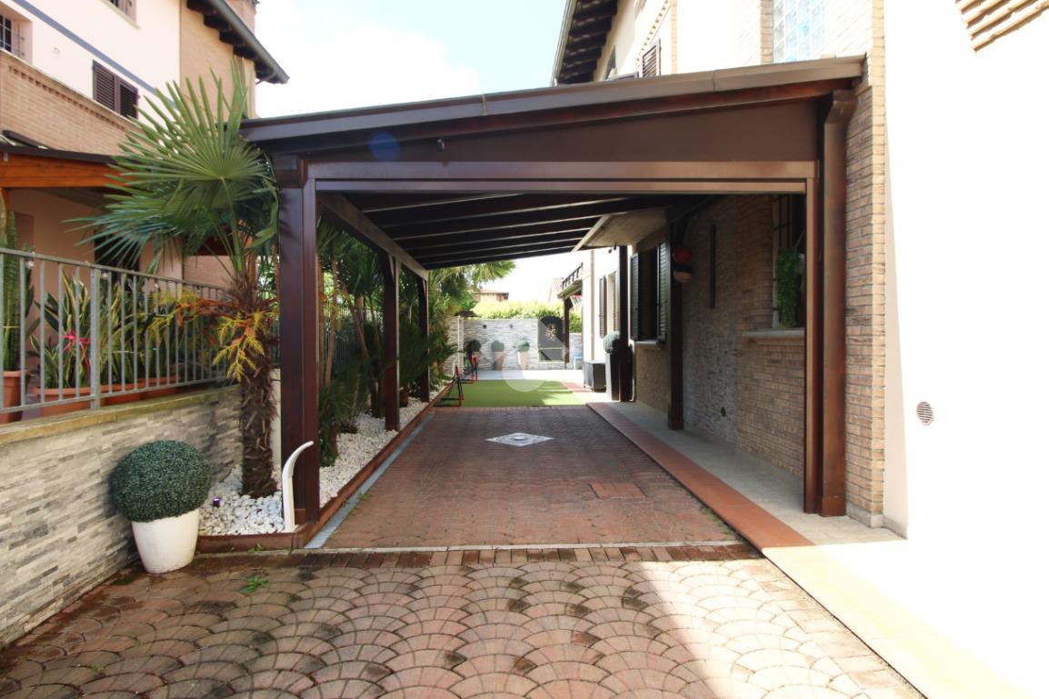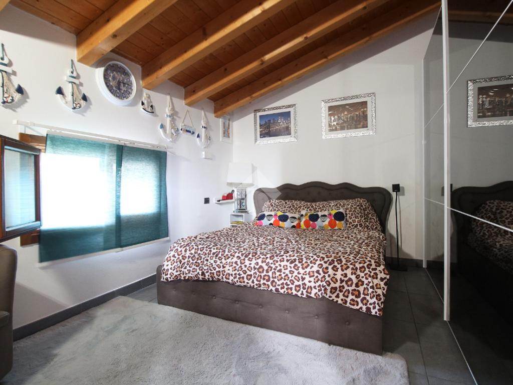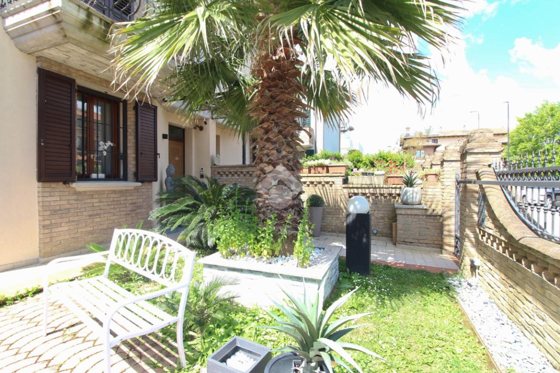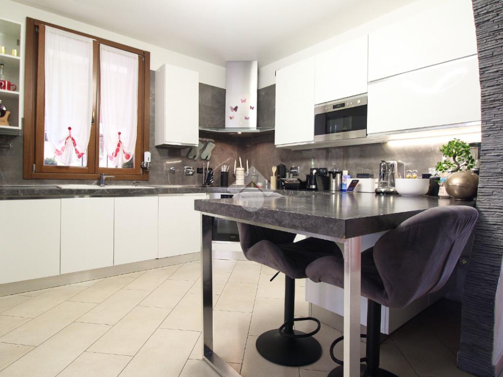 L'immobile è una porzione di bifamiliare circondata su tre lati da corte privata di circa 200 mq. Costruita nel 2007, ha subìto un ulteriore restyling nel 2017, con l'aggiunta di un impianto fotovoltaico di 27 kwh e due batterie d'accumulo. Sorge nel paese di San Pietro in Casale, in una zona esclusivamente residenziale riparata dal traffico. Internamente l'abitazione è organizzata su tre livelli, tutti serviti da bagno. La porta d'ingresso si apre su un ampio soggiorno caratterizzato da camino; la cucina è abitabile e occupa un ambiente indipendente. Il piano terra si completa di bagno e zona lavanderia che accede, sul retro, ad una comoda veranda protetta da teli motorizzati. Il piano superiore è dedicato agli ambienti notte distribuiti da un disimpegno che diventa molto più di una zona di passaggio poiché arredato e illuminato da vetrate che sfruttano tutta la sua altezza. Il piano è caratterizzato da tre camere da letto: la camera padronale servita da bagno e cabina armadio, una seconda camera matrimoniale ed una cameretta con affaccio su balcone. Anche la zona notte ha i servizi igienici. Infine, il piano mansarda di circa 80 mq, interamente rifinito e caratterizzato da una zona giorno con angolo cottura, due camere, un bagno ed un ripostiglio. La casa è dotata di riscaldamento a pavimento, impianto di aria condizionata in tutti gli ambienti, di sistema di allarme. In ottime condizioni e completa di tutto l'arredo, è pronta per essere abitata.