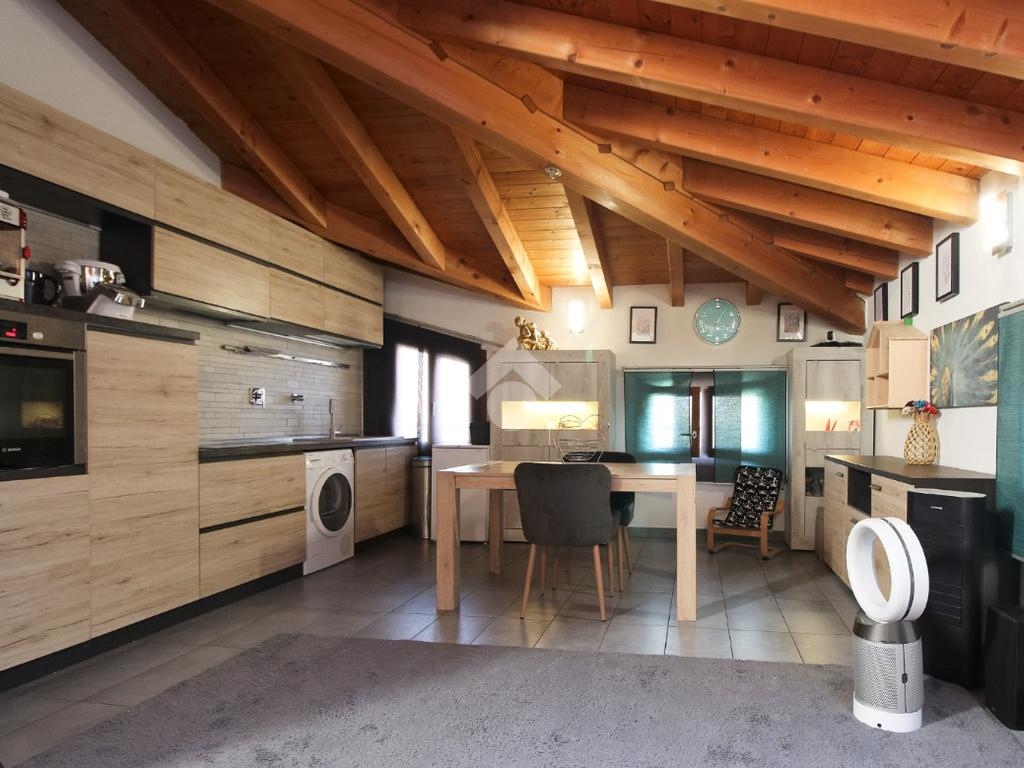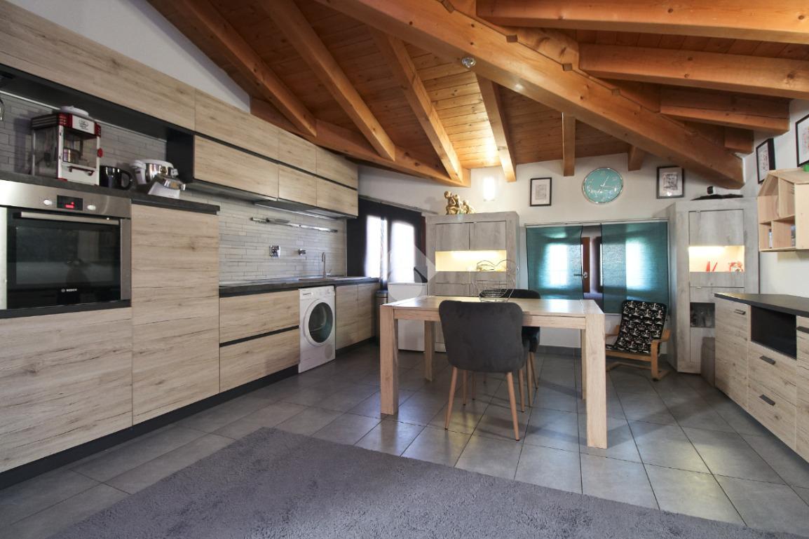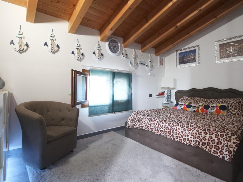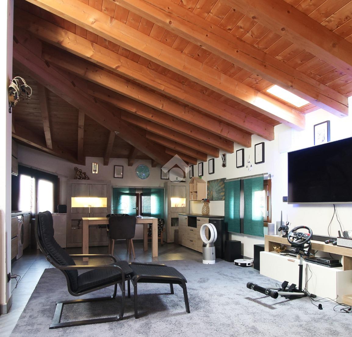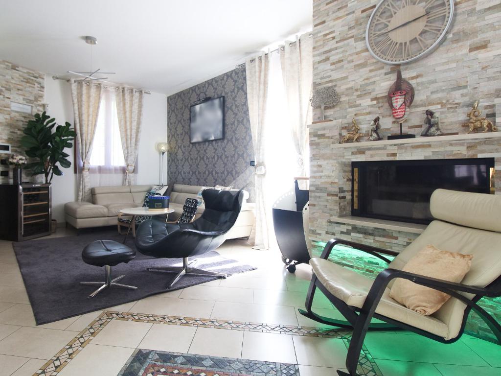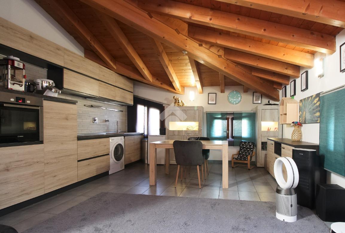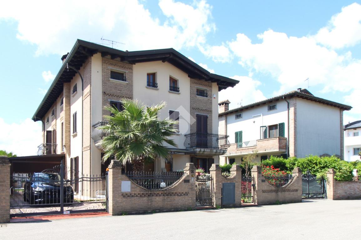 L'immobile è una porzione di bifamiliare circondata su tre lati da corte privata di circa 200 mq. Costruita nel 2007, ha subìto un ulteriore restyling nel 2017, con l'aggiunta di un impianto fotovoltaico di 27 kwh e due batterie d'accumulo. Sorge nel paese di San Pietro in Casale, in una zona esclusivamente residenziale riparata dal traffico. Internamente l'abitazione è organizzata su tre livelli, tutti serviti da bagno. La porta d'ingresso si apre su un ampio soggiorno caratterizzato da camino; la cucina è abitabile e occupa un ambiente indipendente. Il piano terra si completa di bagno e zona lavanderia che accede, sul retro, ad una comoda veranda protetta da teli motorizzati. Il piano superiore è dedicato agli ambienti notte distribuiti da un disimpegno che diventa molto più di una zona di passaggio poiché arredato e illuminato da vetrate che sfruttano tutta la sua altezza. Il piano è caratterizzato da tre camere da letto: la camera padronale servita da bagno e cabina armadio, una seconda camera matrimoniale ed una cameretta con affaccio su balcone. Anche la zona notte ha i servizi igienici. Infine, il piano mansarda di circa 80 mq, interamente rifinito e caratterizzato da una zona giorno con angolo cottura, due camere, un bagno ed un ripostiglio. La casa è dotata di riscaldamento a pavimento, impianto di aria condizionata in tutti gli ambienti, di sistema di allarme. In ottime condizioni e completa di tutto l'arredo, è pronta per essere abitata.
