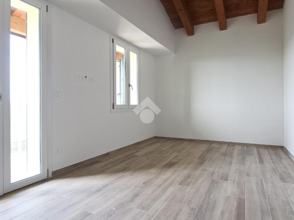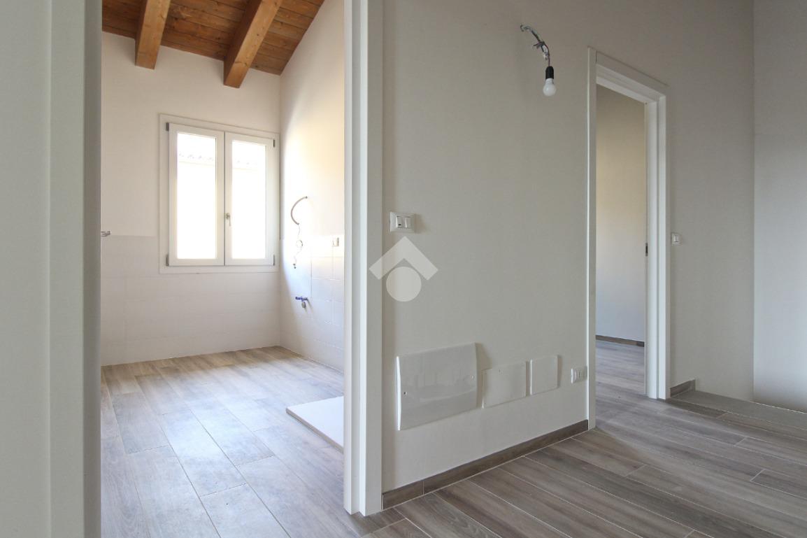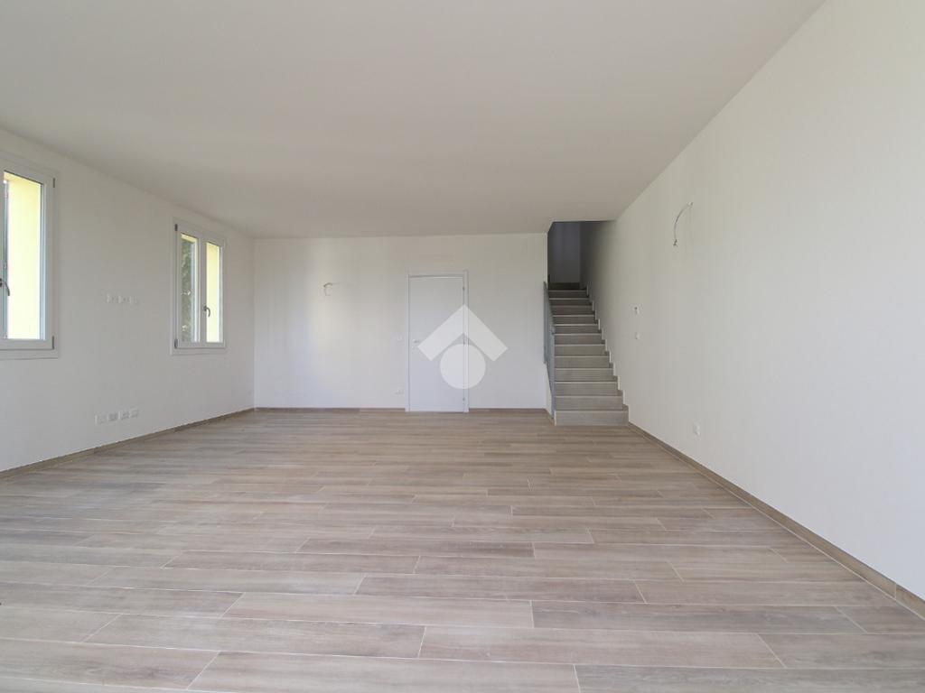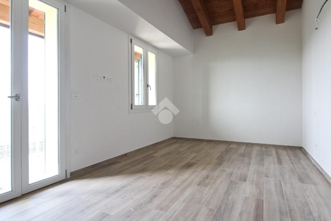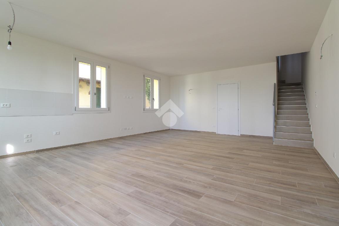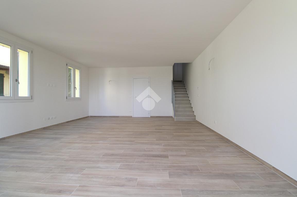 Porzione di quadrifamiliare cinta, su due lati, da giardino privato. L'immobile nasce dalla totale e accurata ristrutturazione, con standard energetici attuali, di un edificio preesistente. Sorge nel Comune di San Pietro in Casale, in un contesto esclusivamente residenziale e riservato. L'ingresso si apre su una zona giorno organizzata, per circa 44 mq, in openspace con cucina a vista. Il disimpegno conduce ai servizi igienici e ad un vano tecnico. Il piano superiore è dedicato alla zona notte con due camere da letto e secondo bagno. La casa è dotata di spaziesterni: giardino privato, di circa 149 mq, perfetto per i momenti di relax all'aperto, cene estive o per gli amici a quattro zampe, oltre a un comodo balcone al piano superiore.
